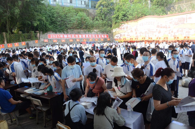 工作会结束后,高校代表们赶赴攀枝花市,先后走进攀枝花三中、攀枝花七中开展高考招生咨询活动。在活动现场,高校代表们就专项计划、强基计划及本校的学科实力、人才培养、往年在川招生录取等情况,为前来咨询的考生、家长、中学代表进行了耐心详细的解答。一名现场咨询的考生详细地记录着高校老师解答的信息,并兴奋地说:“能有机会与这么多知名大学的老师当面交流,真的太幸福了,非常感谢省教育考试院为搭建交流平台所做出的辛勤付出。”