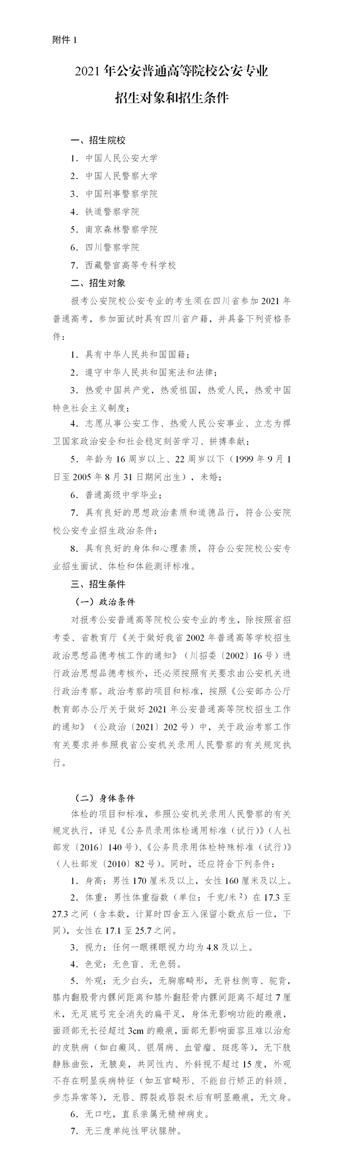 1.2021年公安普通高等院校公安专业招生对象和招生条件【下载】