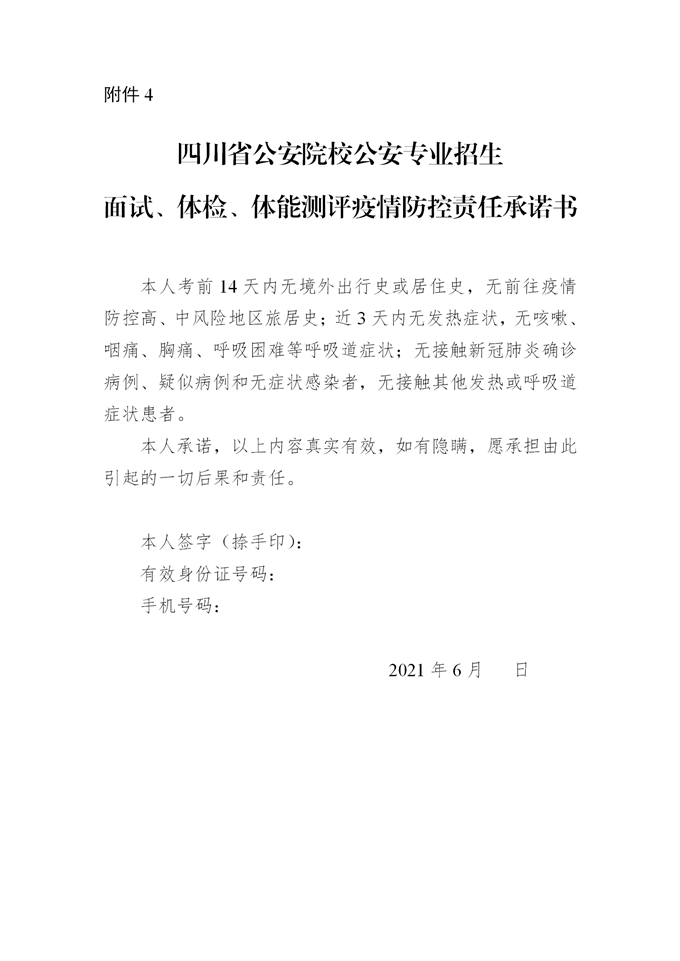 4.四川省2021年公安院校公安专业招生面试、体检、体能测评疫情防控责任承诺书【下载】