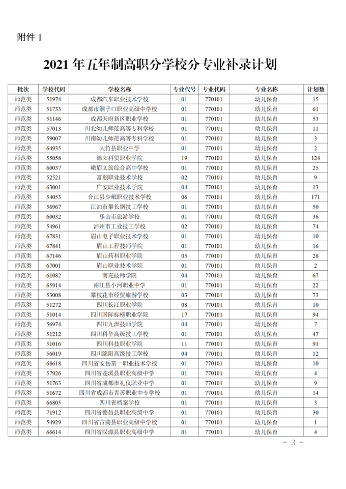关于2021年中高职衔接五年贯通培养招生补录工作的通知