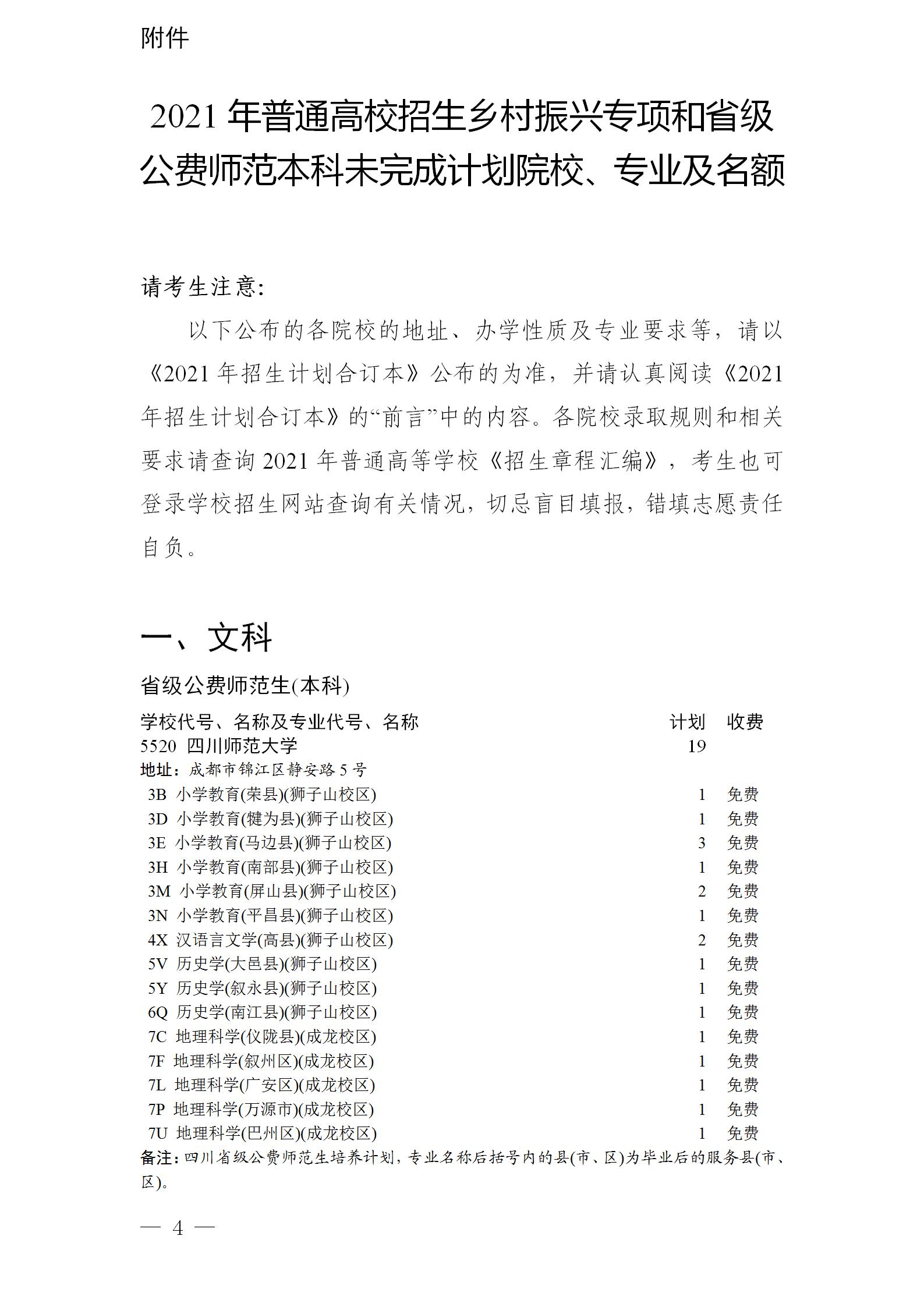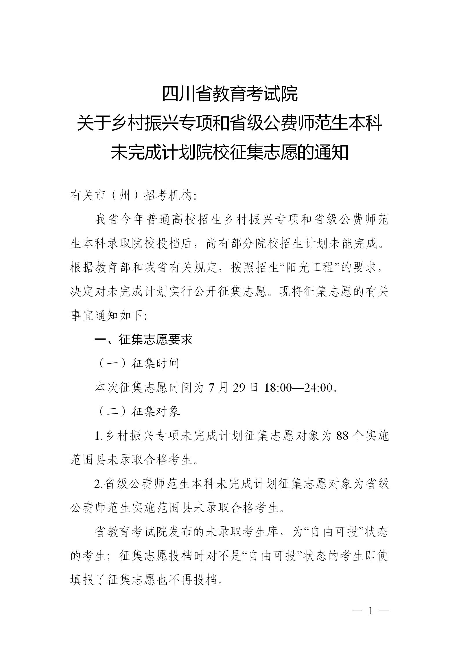 关于乡村振兴专项和省级公费师范生本科未完成计划院校征集志愿的通知