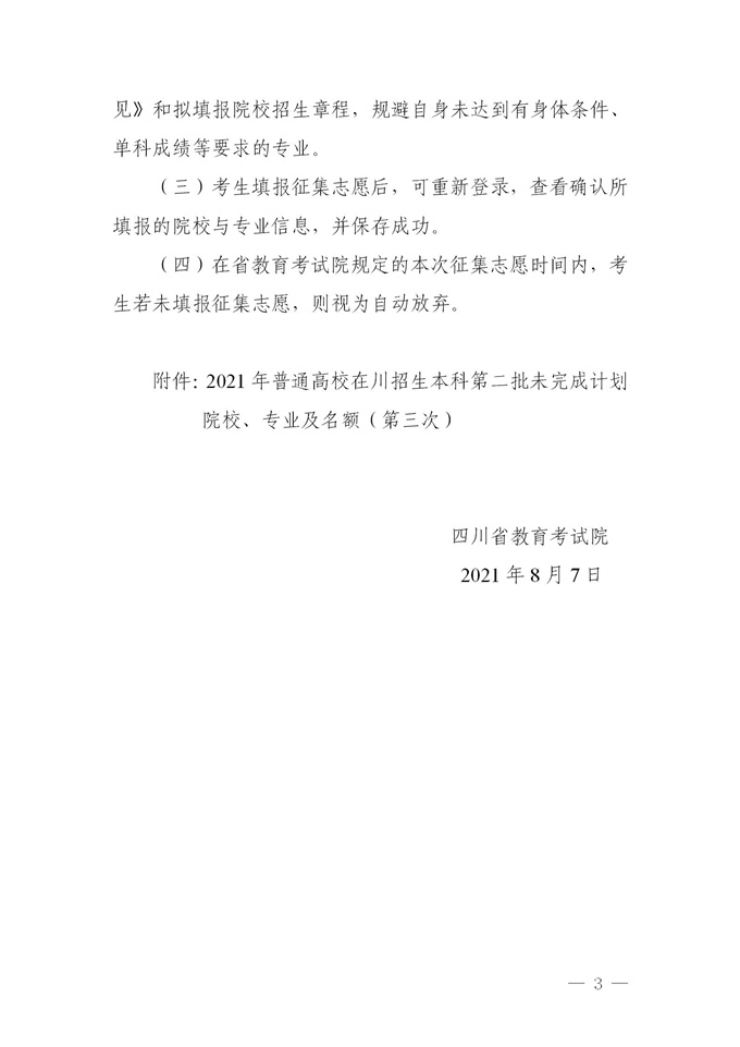 关于本科第二批未完成计划院校第三次征集志愿的通知