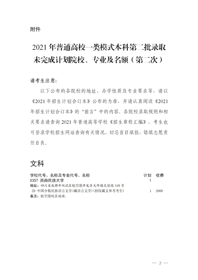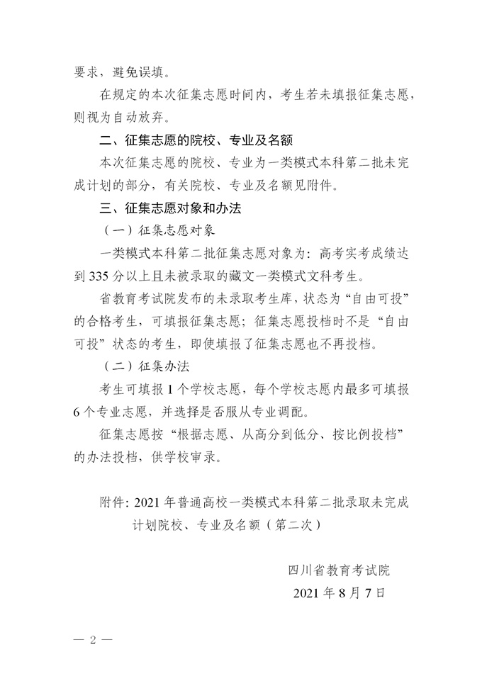 关于普通高校一类模式本科第二批未完成计划院校第二次征集志愿的通知