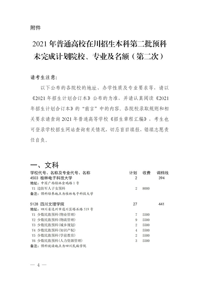 关于本科第二批预科未完成计划院校第二次征集志愿的通知