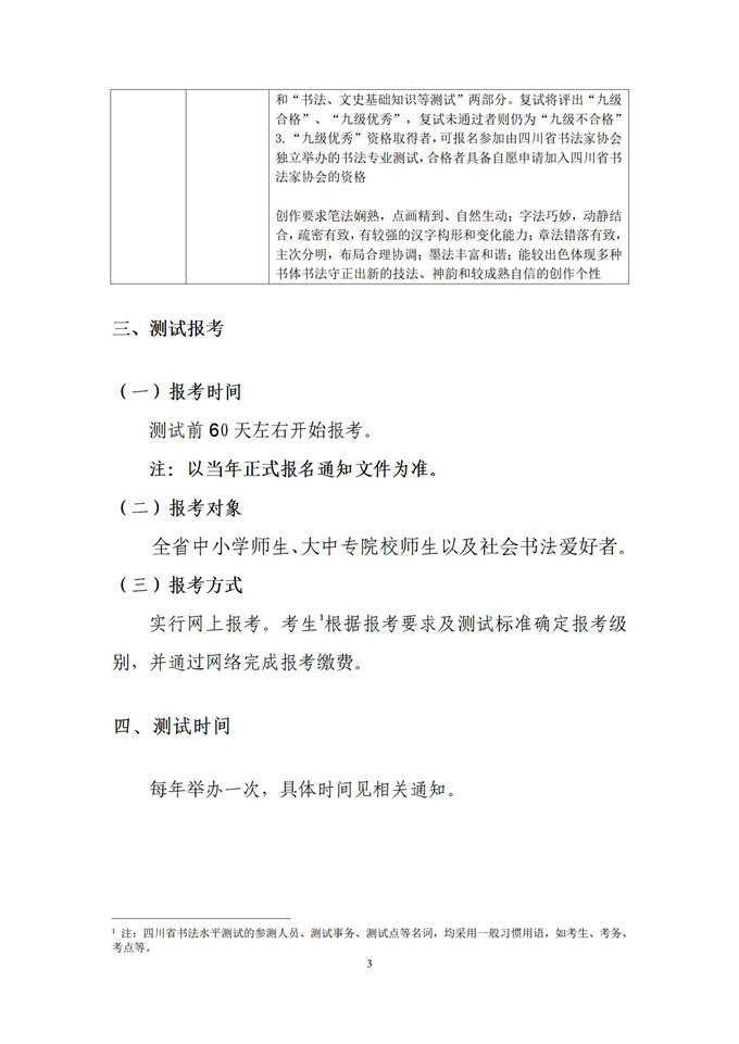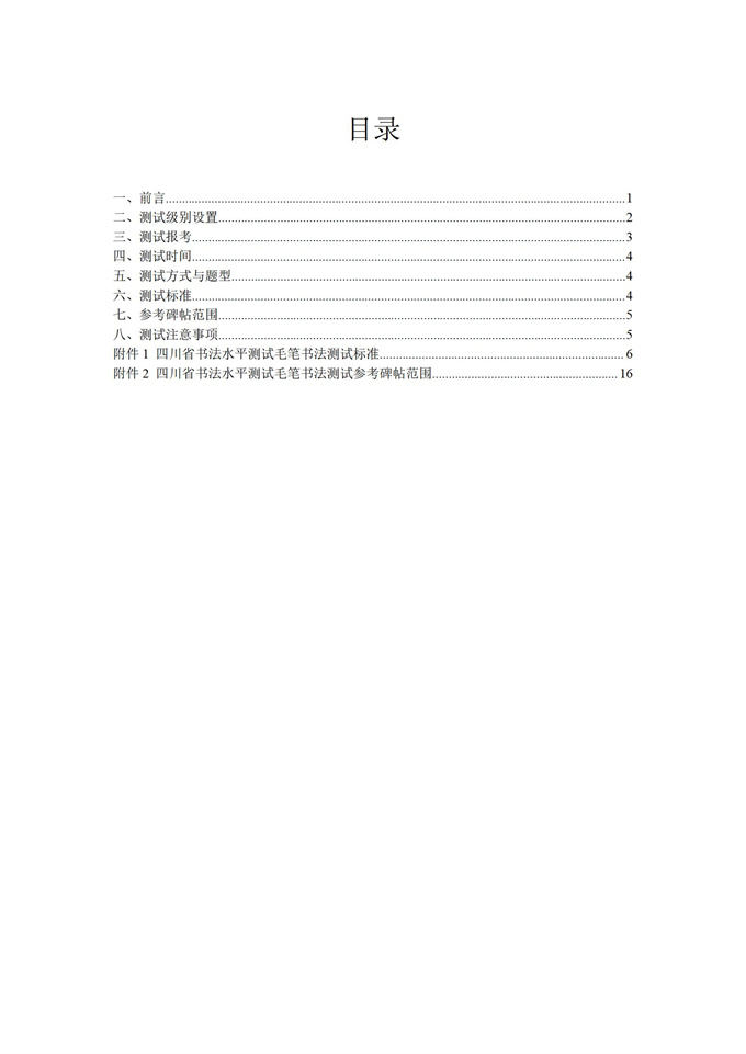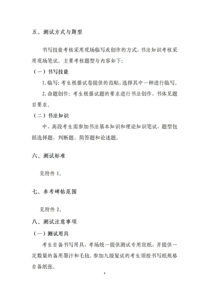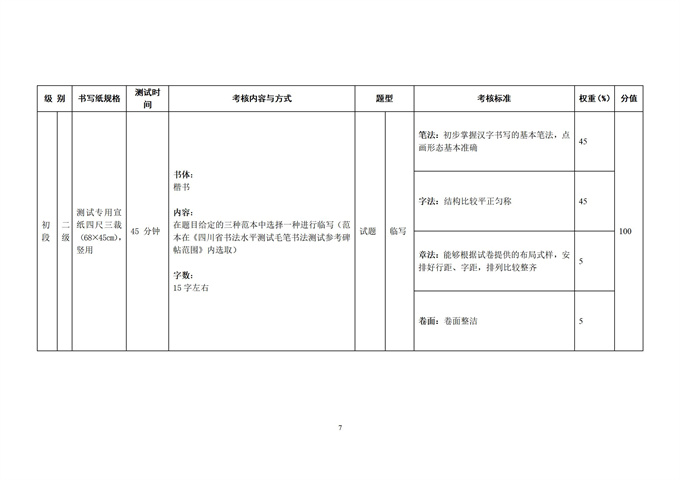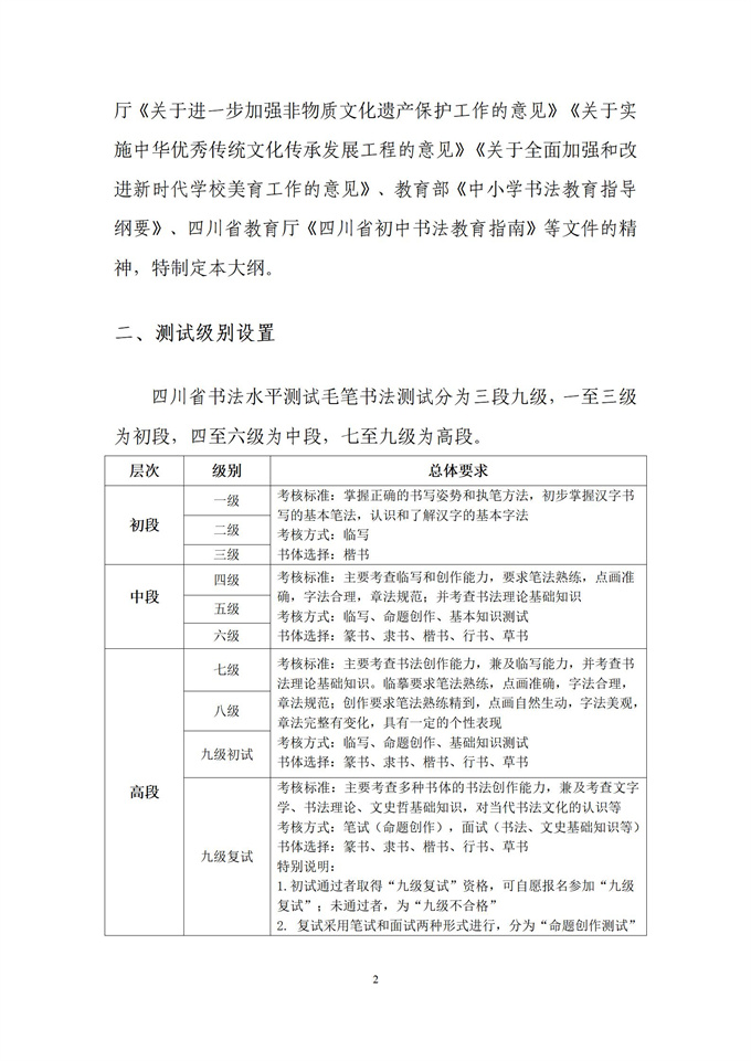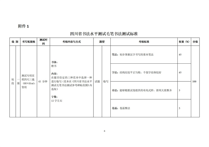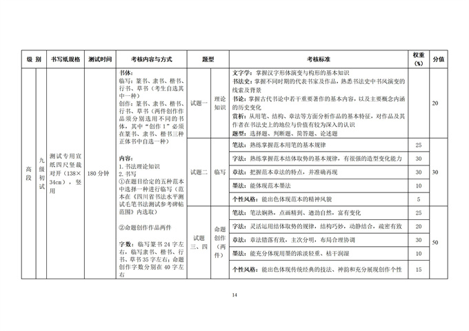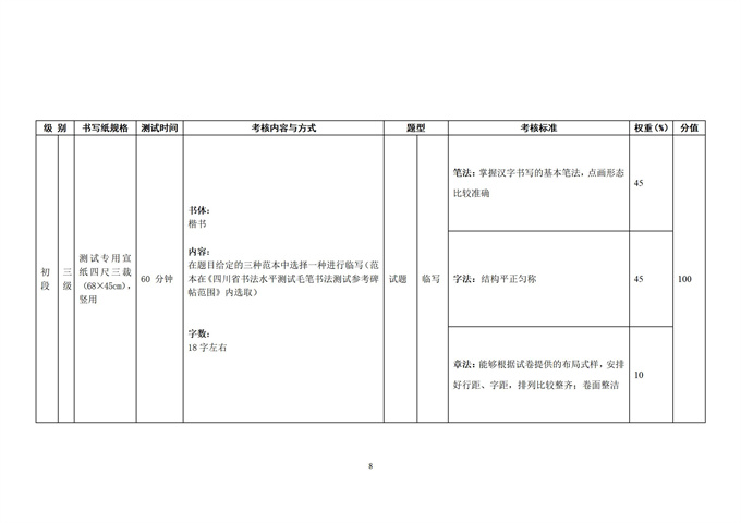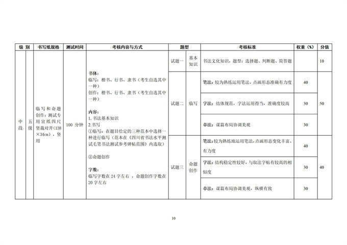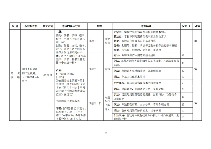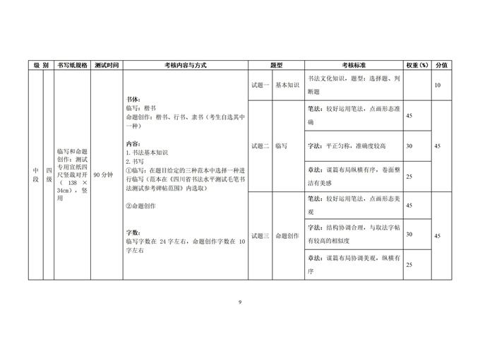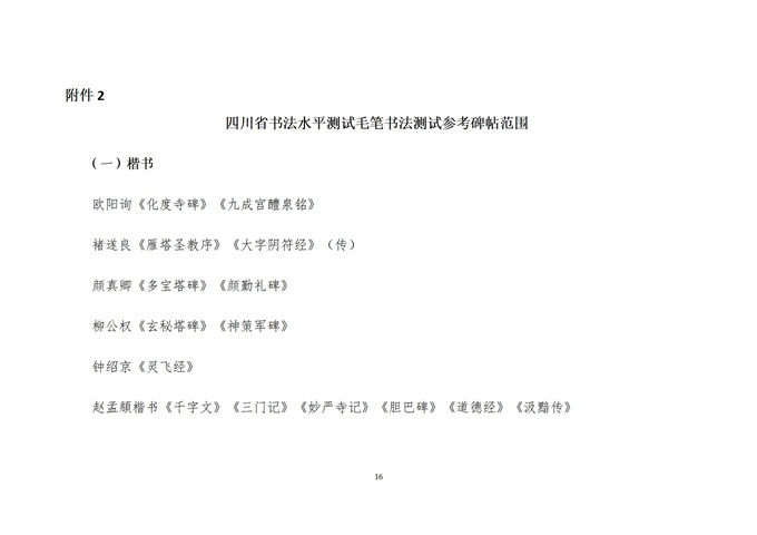 四川省书法水平测试毛笔书法测试大纲(2021年版)