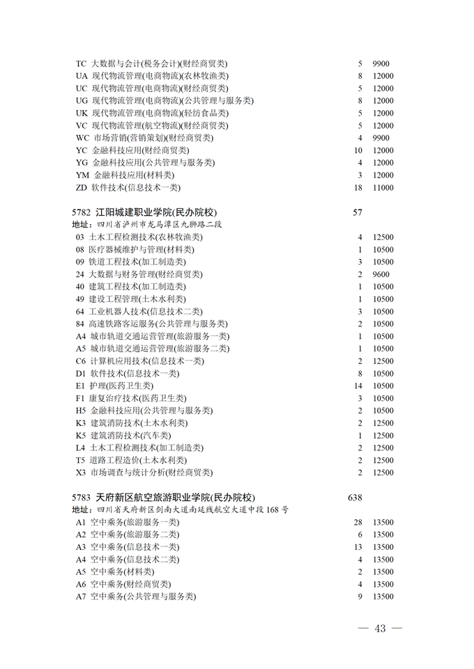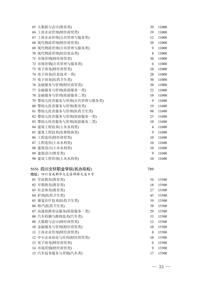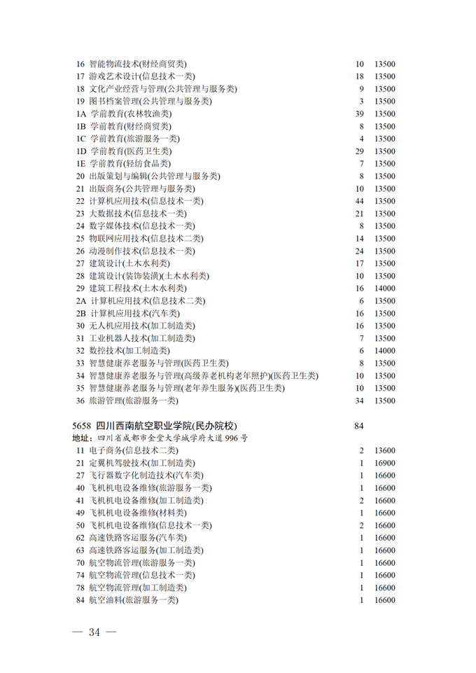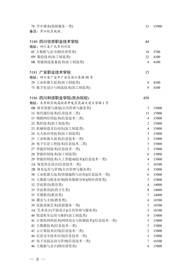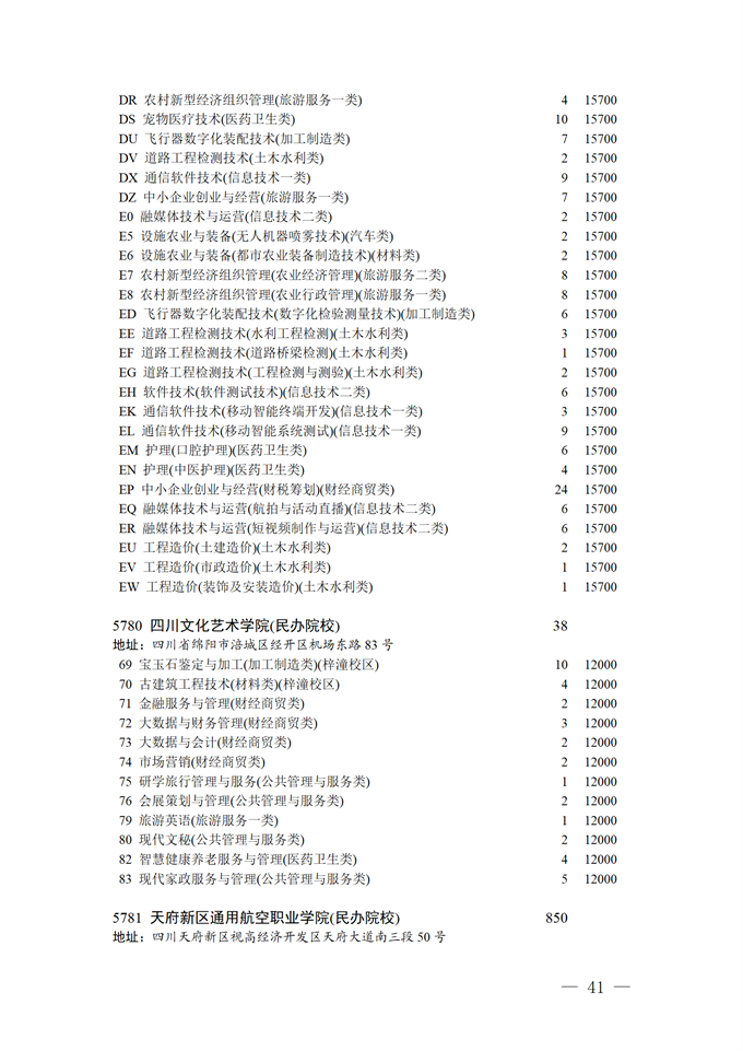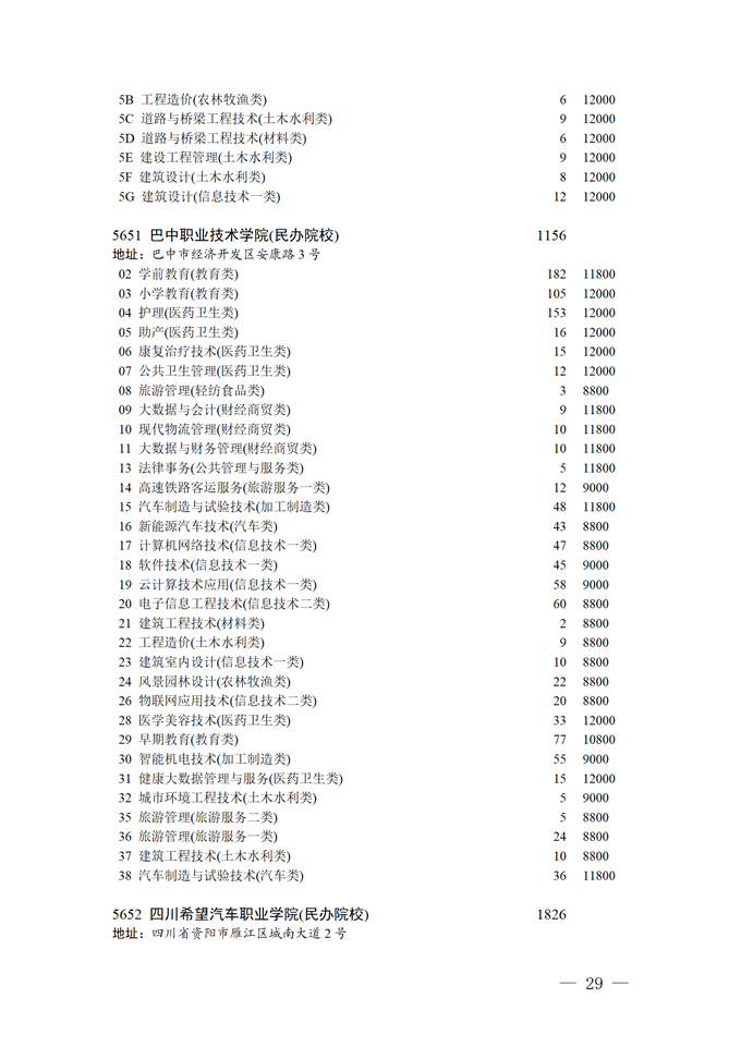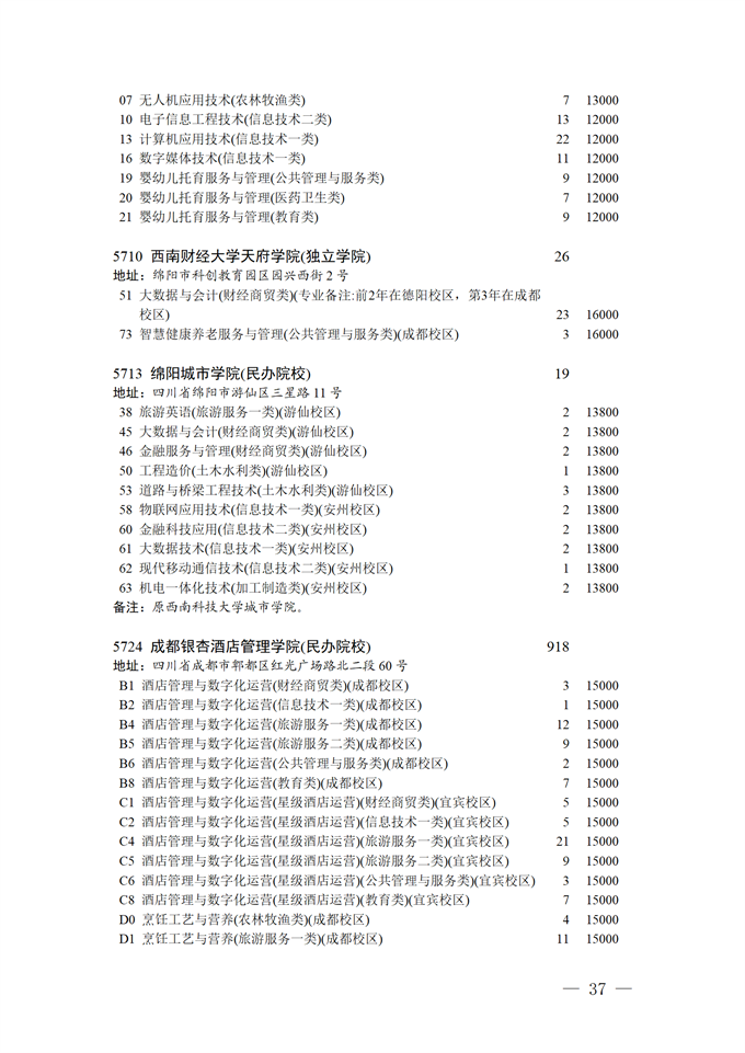 四川省2025年普通高校专升本招生专业及计划