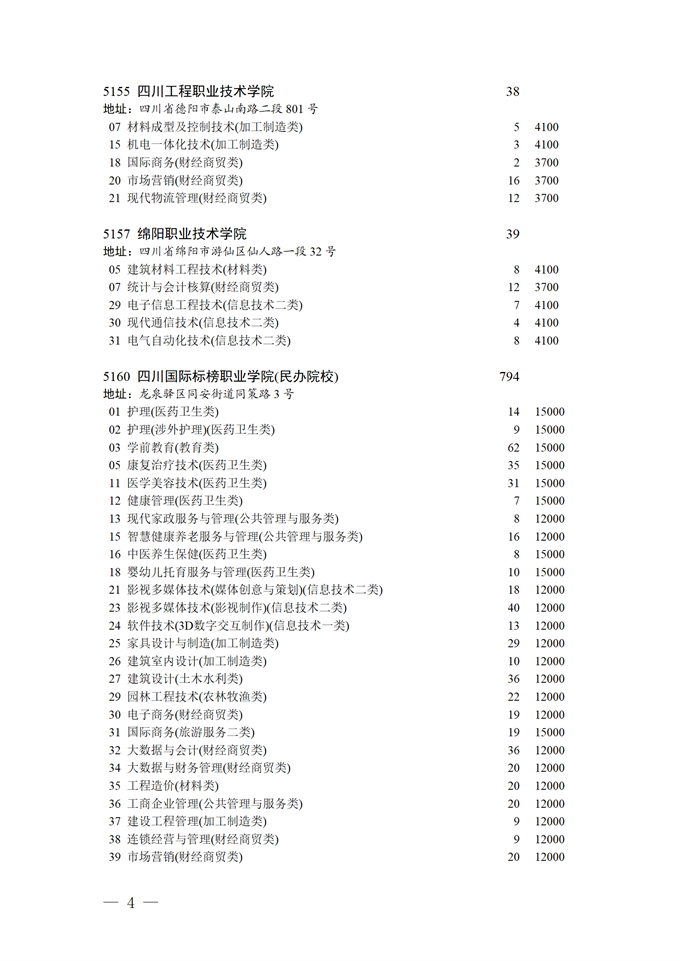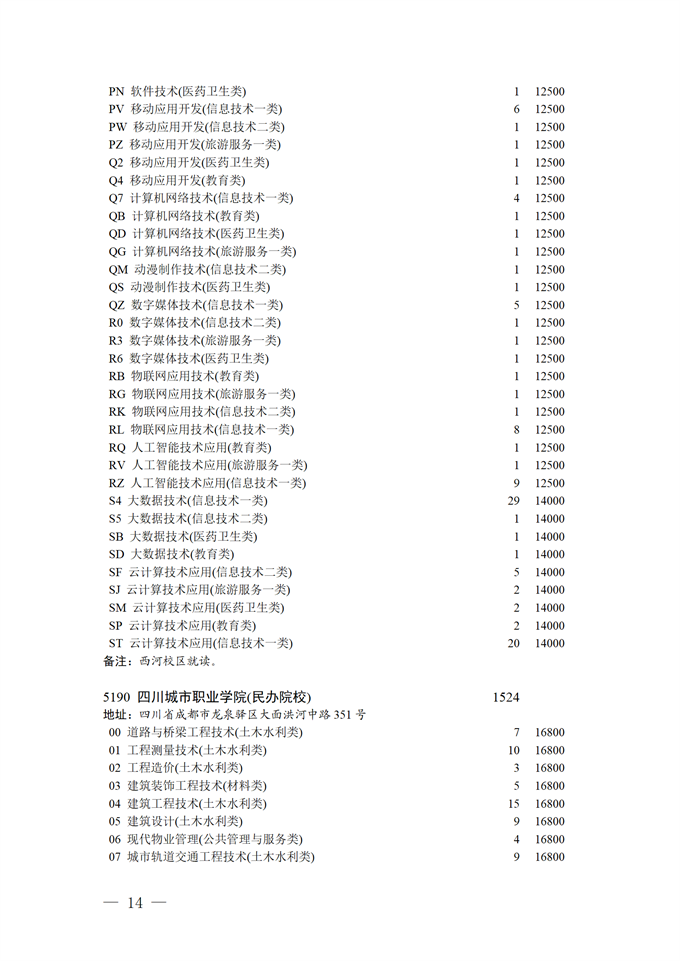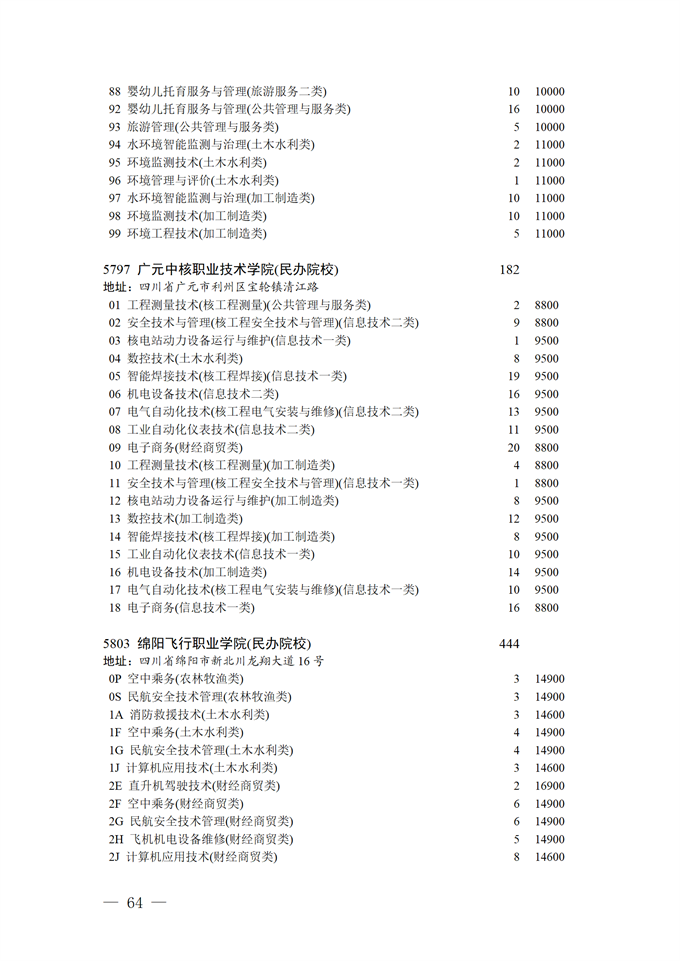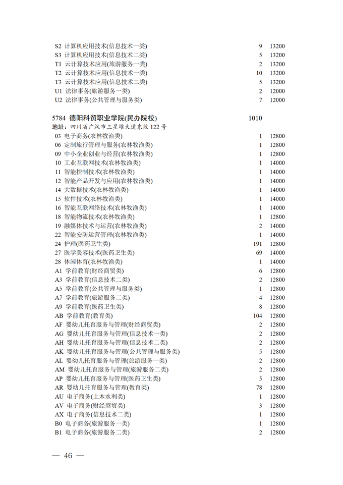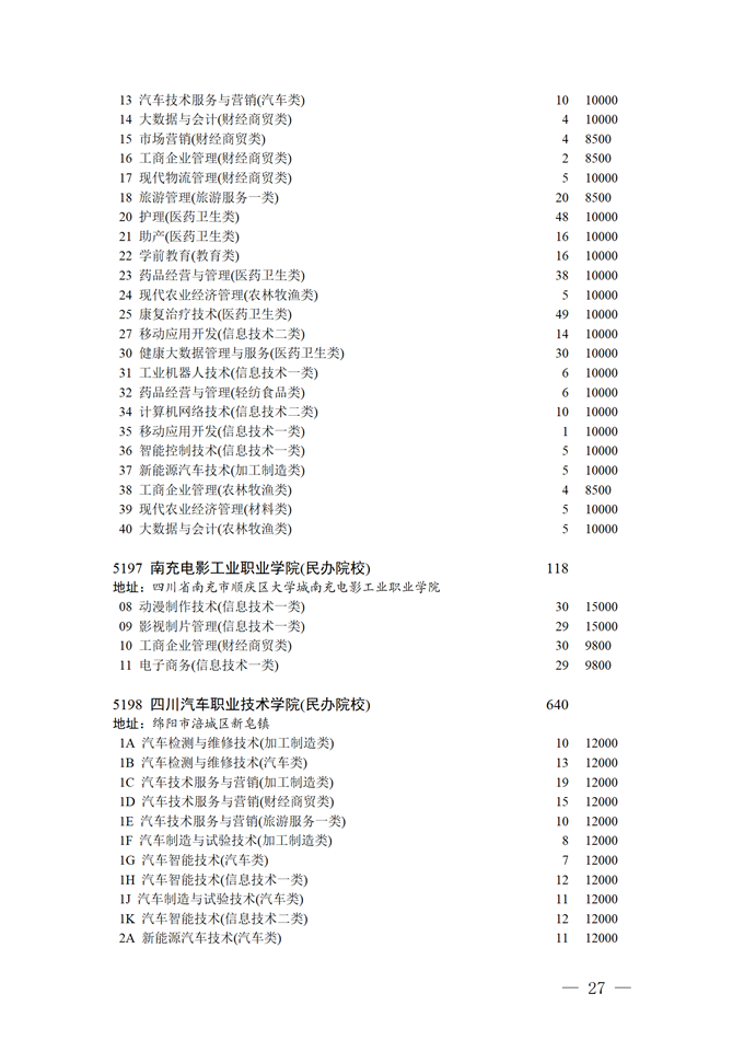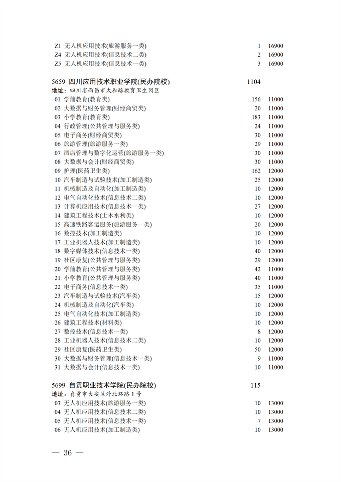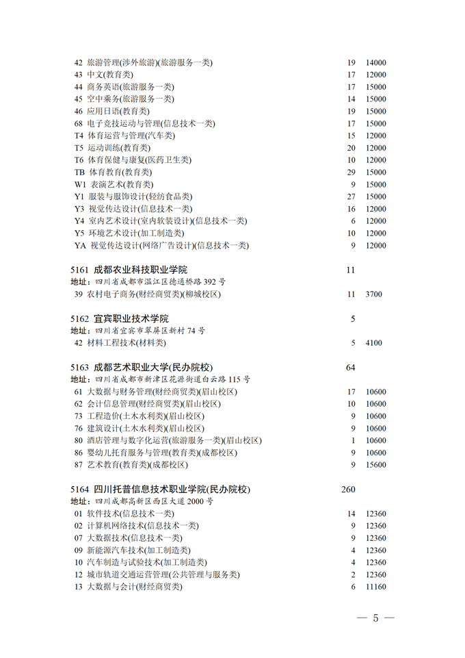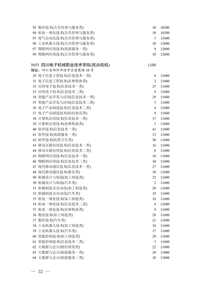 四川省2025年普通高校专升本招生专业及计划