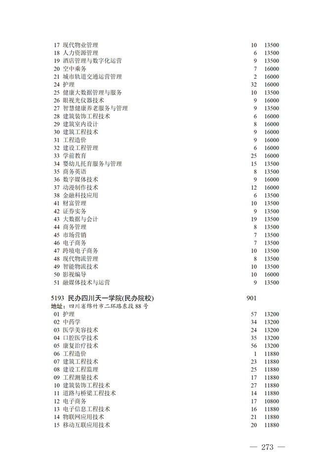四川省2025年普通高校专升本招生专业及计划