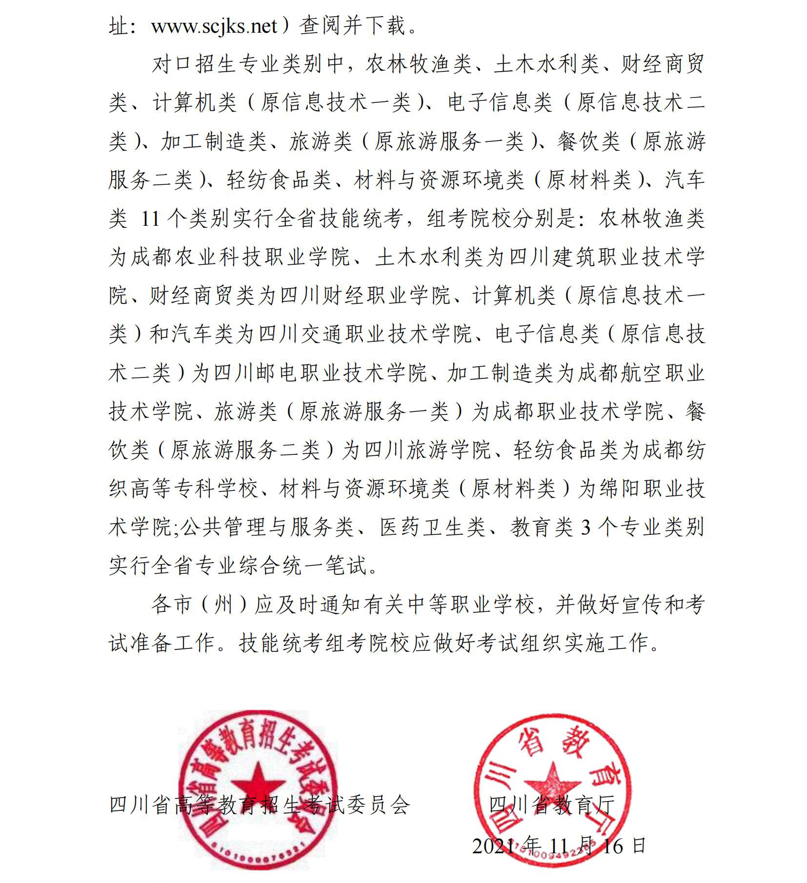 关于公布四川省2022年普通高校对口招生职业技能考试大纲的通知