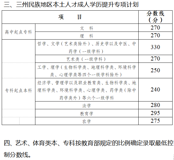 附:四川省2021年各类成人高校招生录取最低控制分数线
