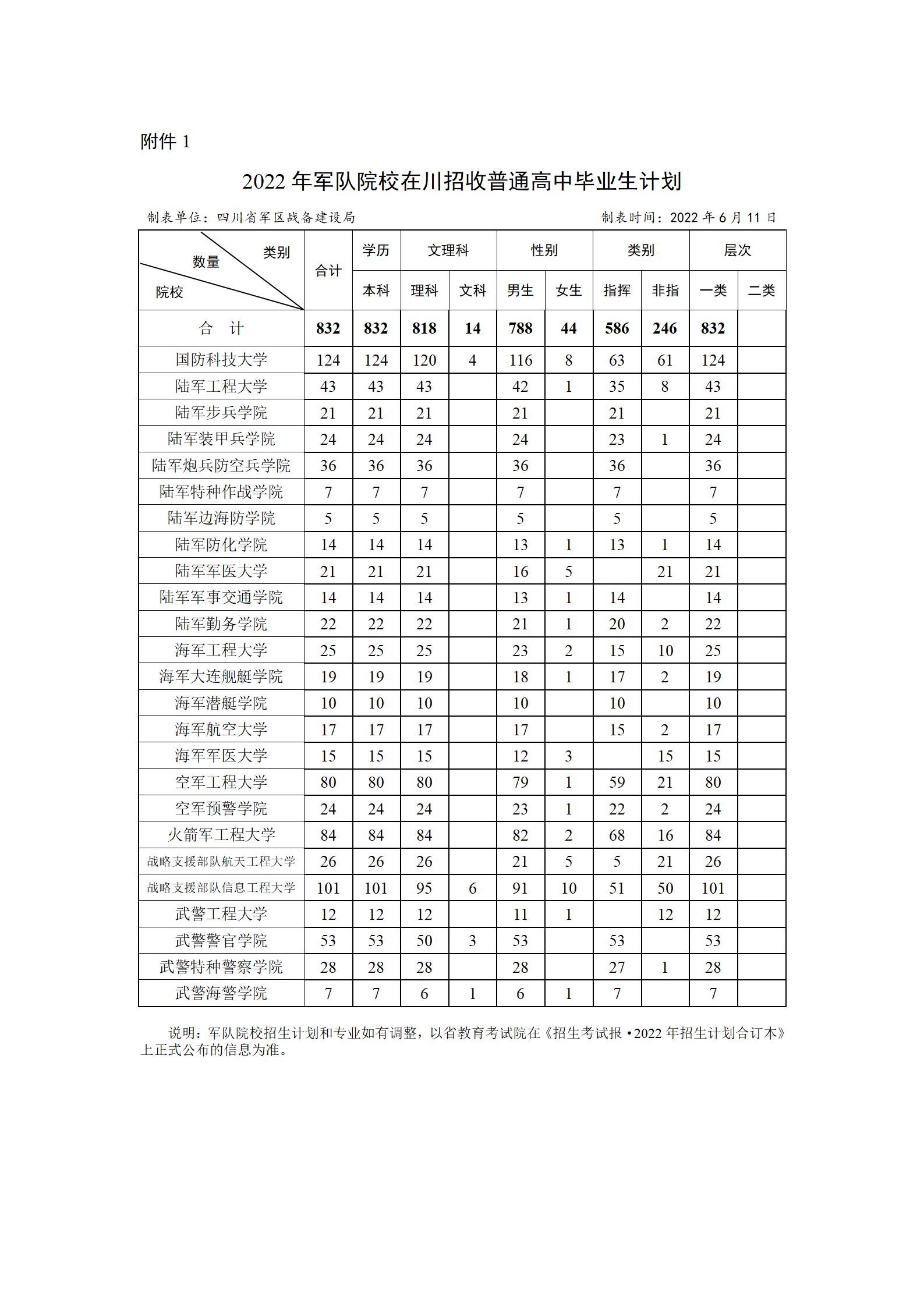附件:1.2022年军队院校在川招收普通高中毕业生计划(下载)