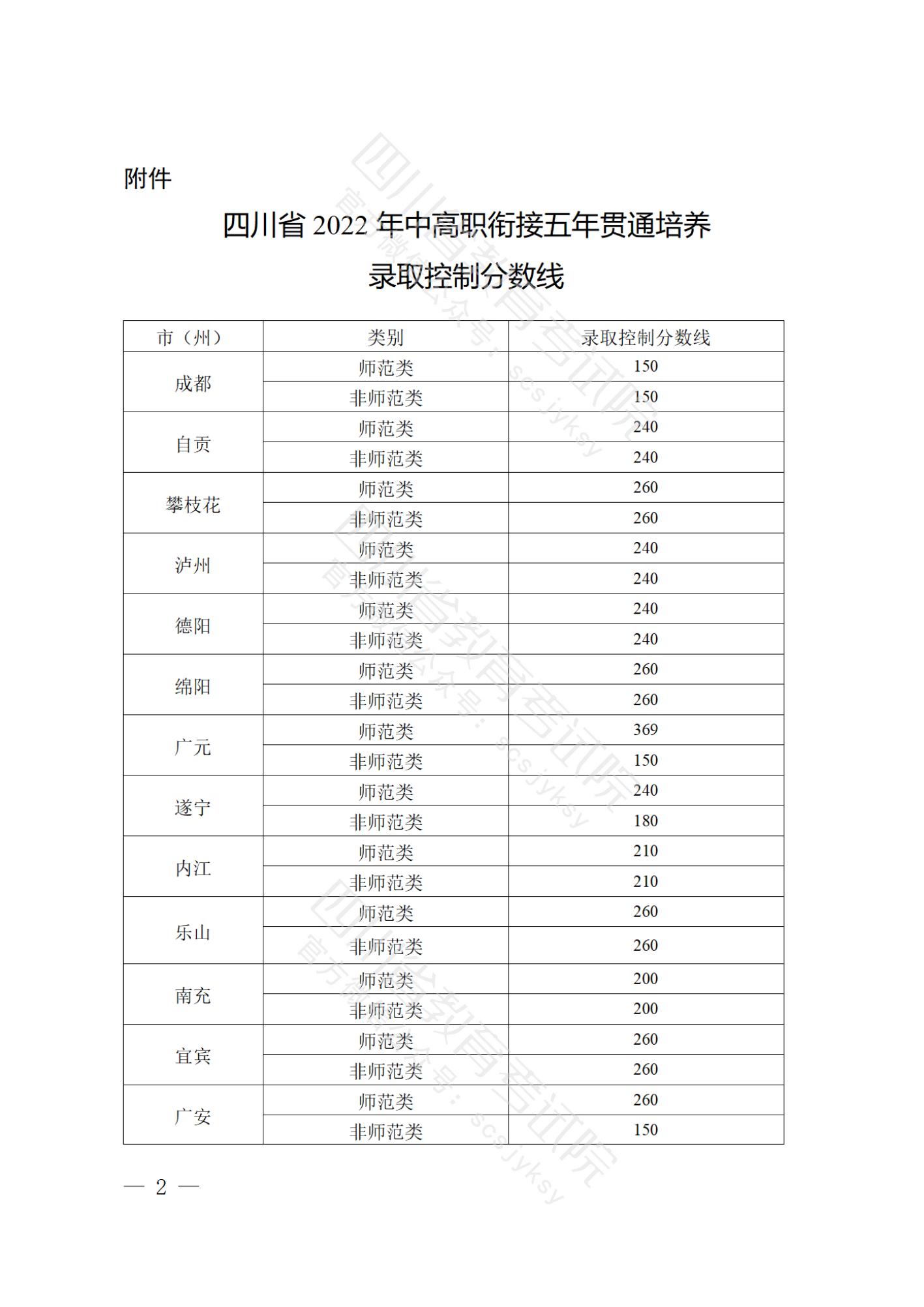 附件:四川省2022年中高职衔接五年贯通培养录取控制分数线
