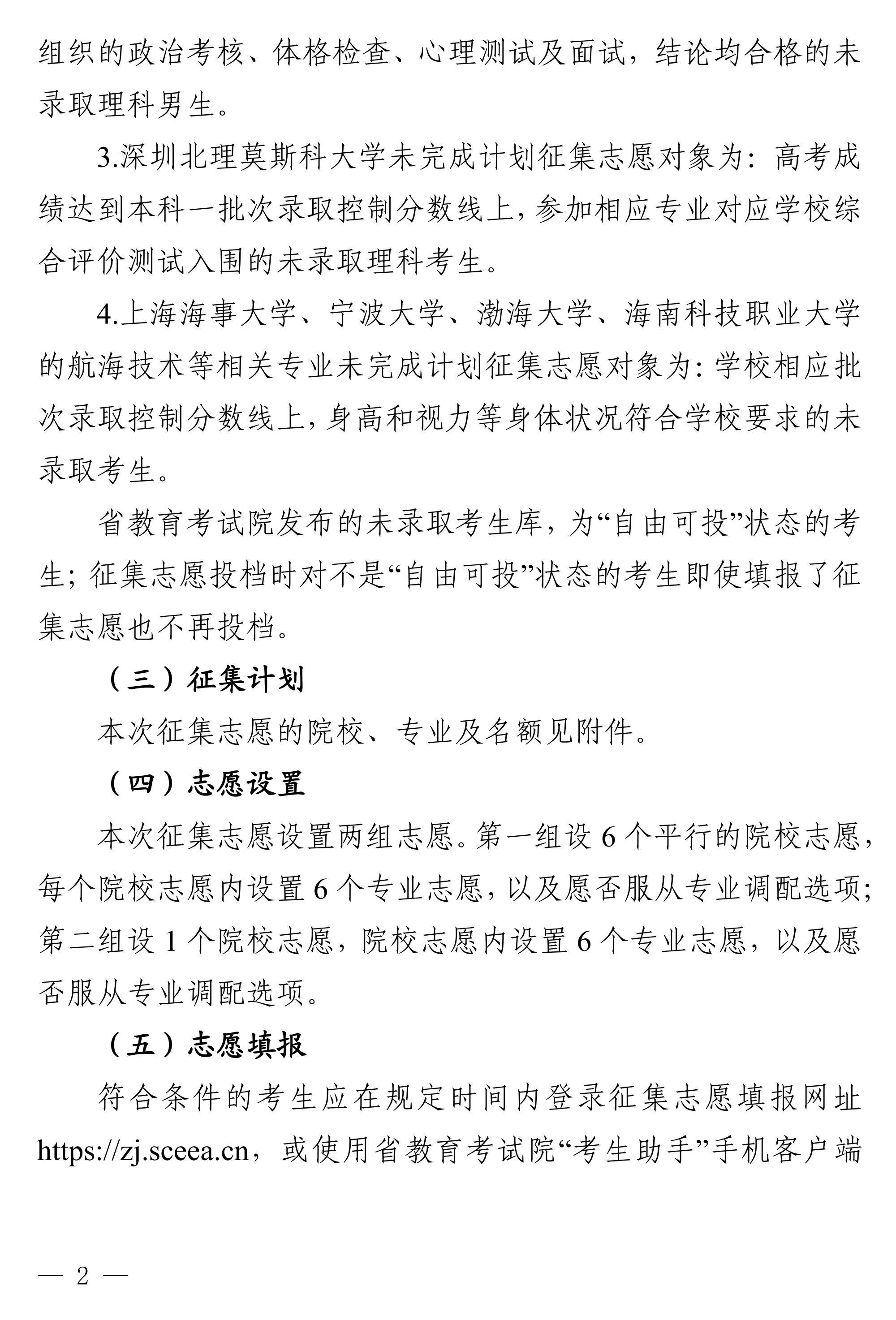 关于本科提前批未完成计划院校征集志愿的通知