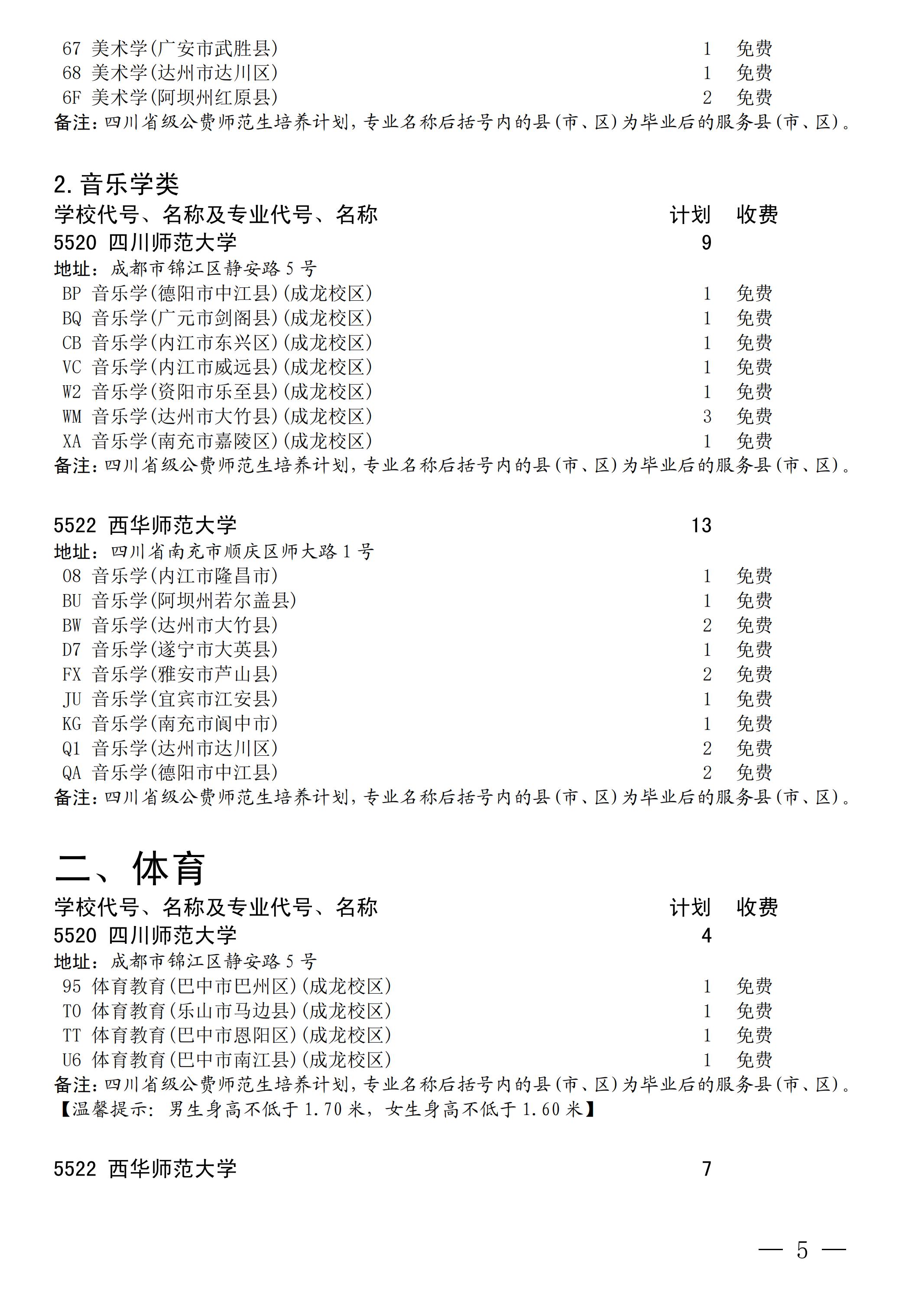 关于艺体类省级公费师范生本科录取未完成计划征集志愿的通知