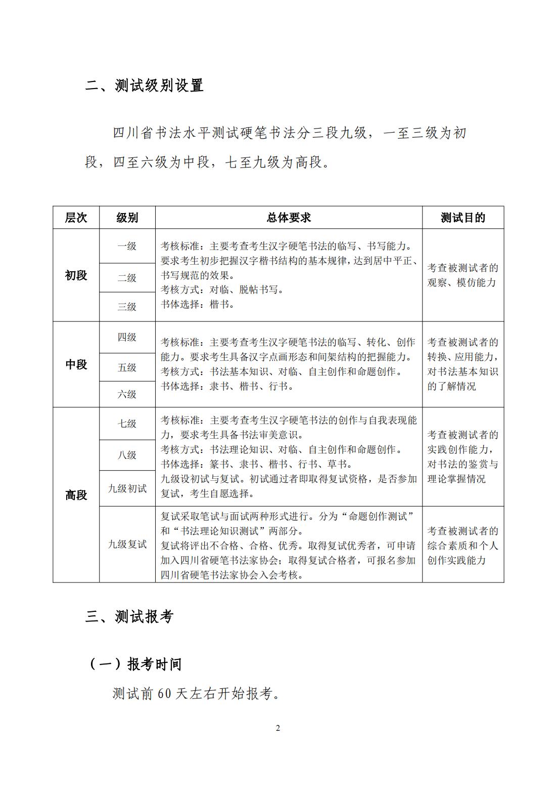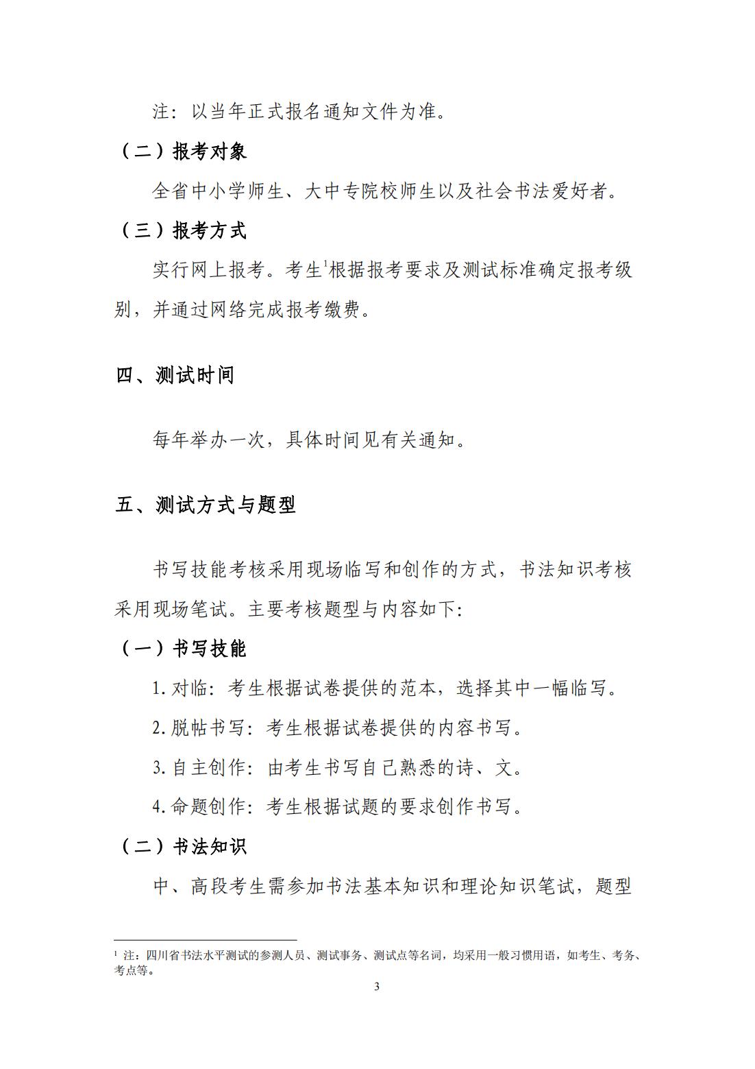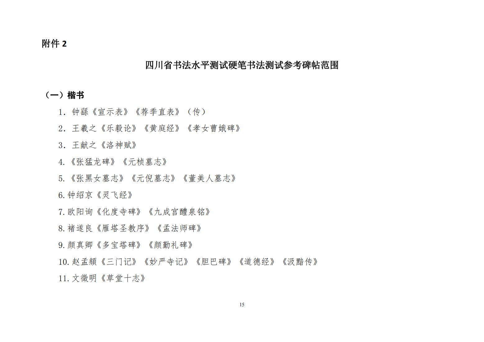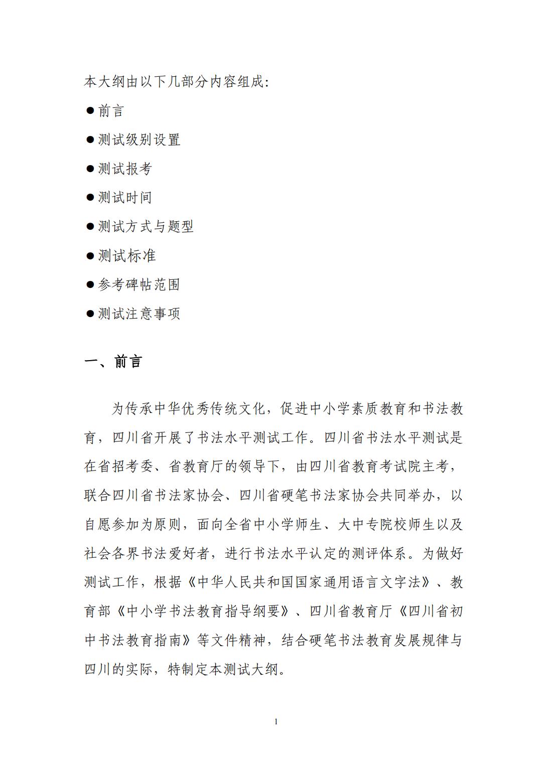 四川省书法水平测试硬笔书法测试大纲 (2022年版)