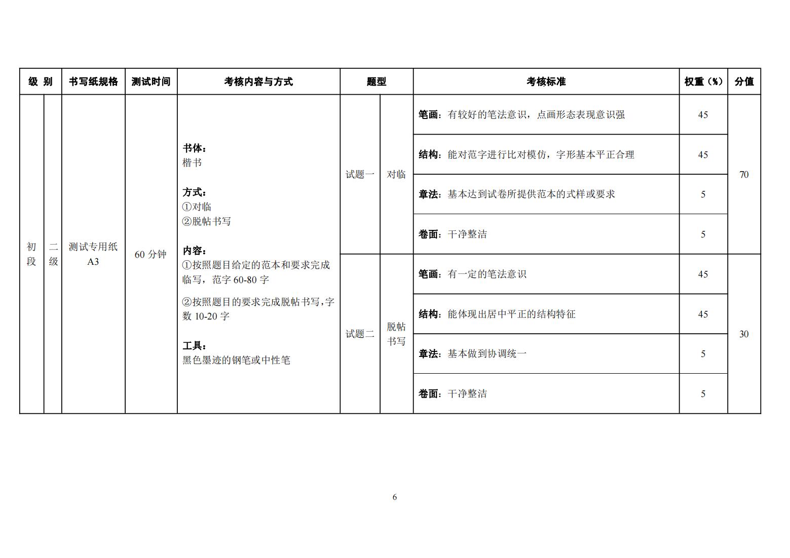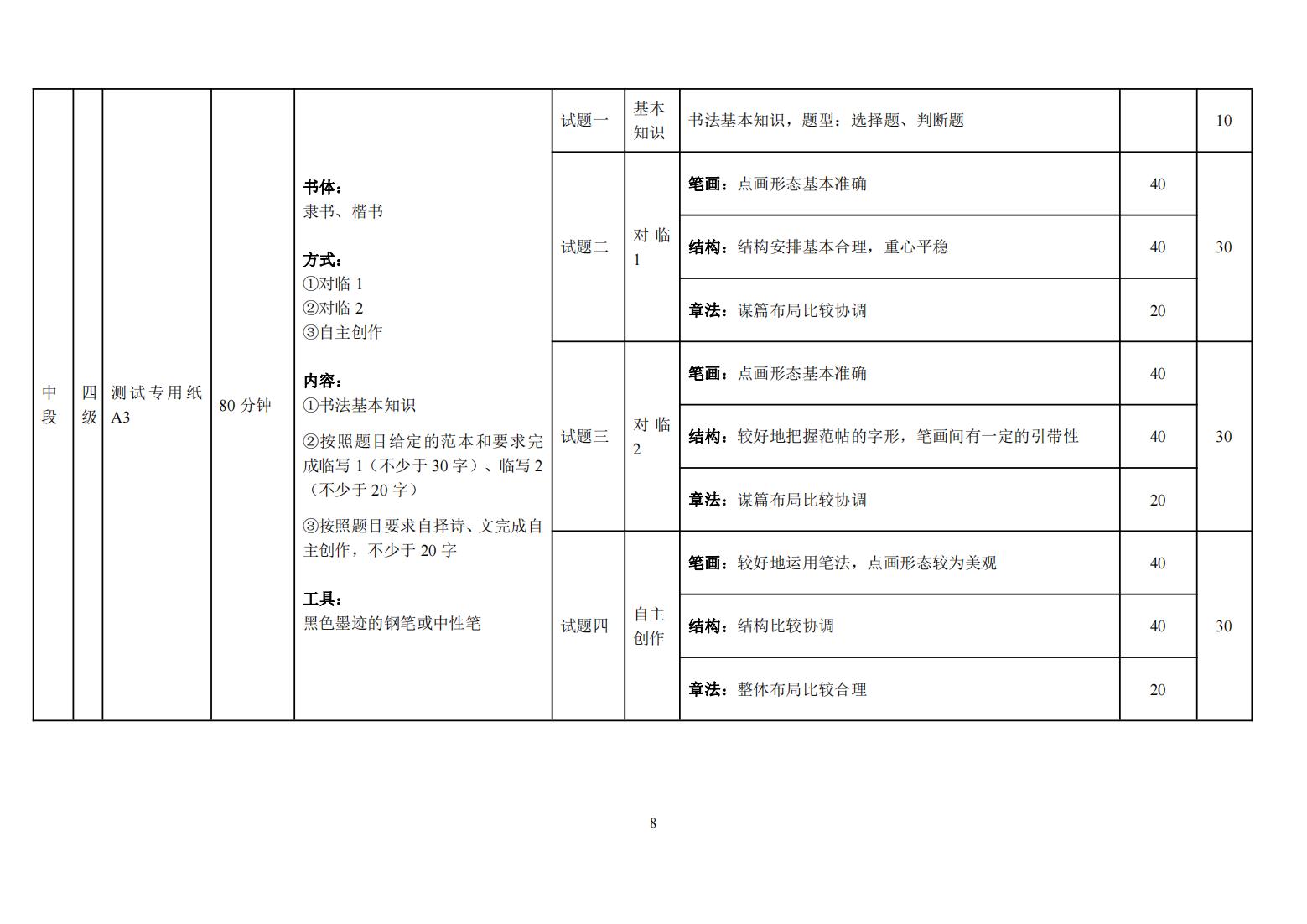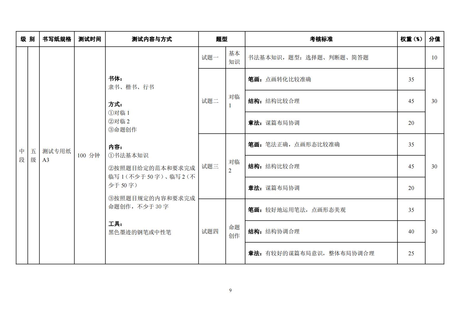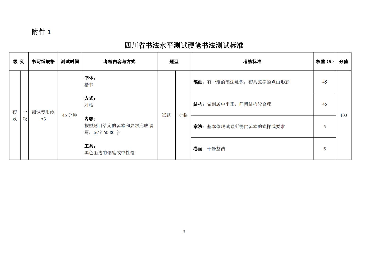 四川省书法水平测试硬笔书法测试大纲 (2022年版)