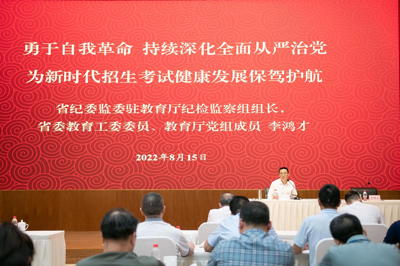 会议采取个人自学、集中学习、交流发言相结合的方式进行。8月15日上午,省教育考试院举办2022年第十二期干部大讲堂,集中观看了警示教育片《案鉴》,聆听了省纪委监委驻教育厅纪检监察组组长、省委教育工委委员、教育厅党组成员李鸿才同志主讲的《勇于自我革命 持续深化全面从严治党 为新时代招生考试健康发展提供坚强保障》专题讲座。讲座从“正确认识把握严的主基调的内涵”“深刻理解为什么要把严的主基调长期坚持下去”“当前教育系统全面从严治党存在的问题”“如何推进自我革命,真正贯彻落实长期从严”四个方面,深入浅出地讲解了新时代全面从严治党的路径和方法。