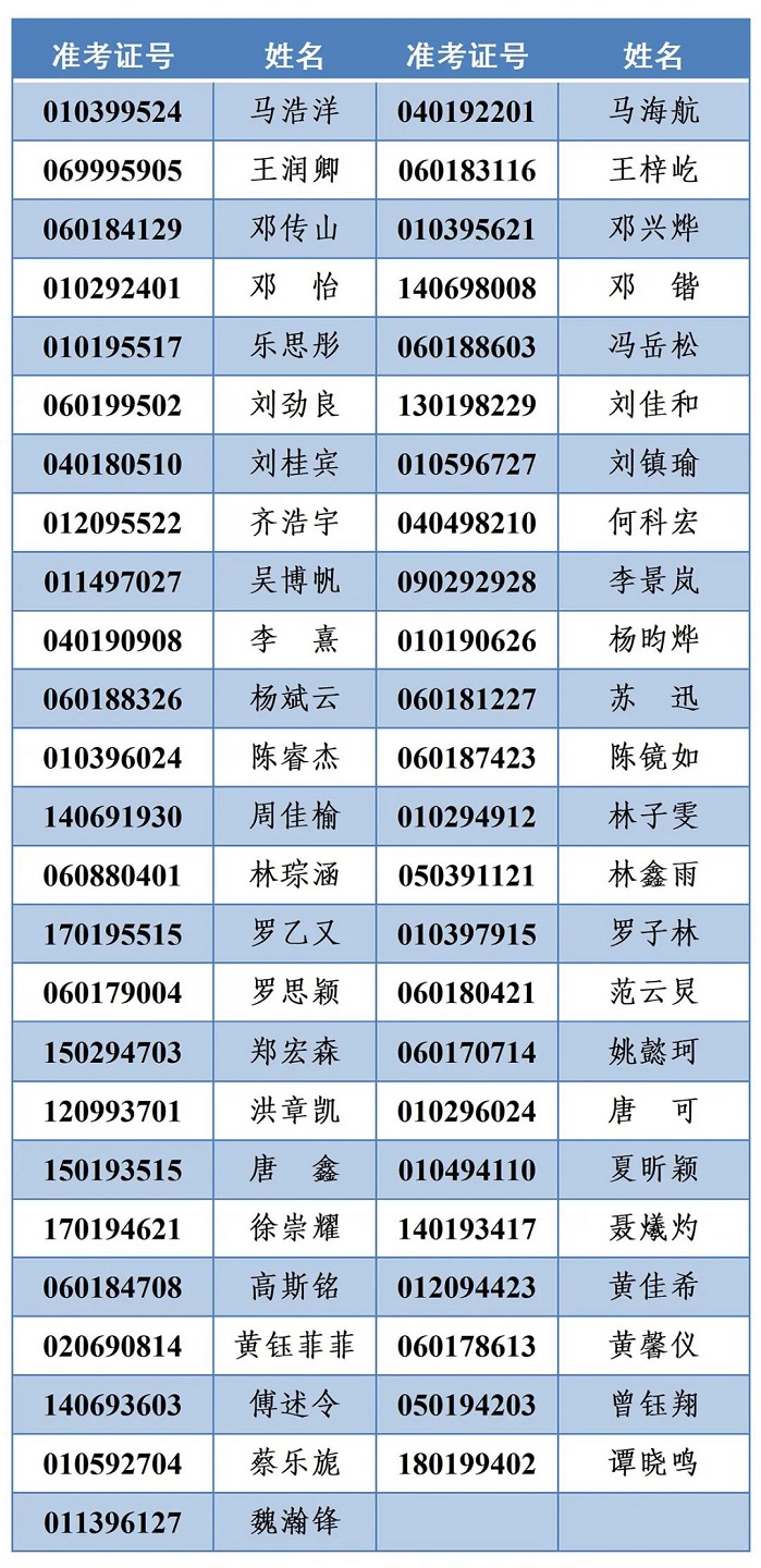 备注:该名单根据四川考生志愿填报情况,以高考成绩总分从高到低的顺序,按照北京电子科技学院2023年在川招生计划数与面试人数1∶2的比例确定(面试分数线并列的考生,一并列入)。