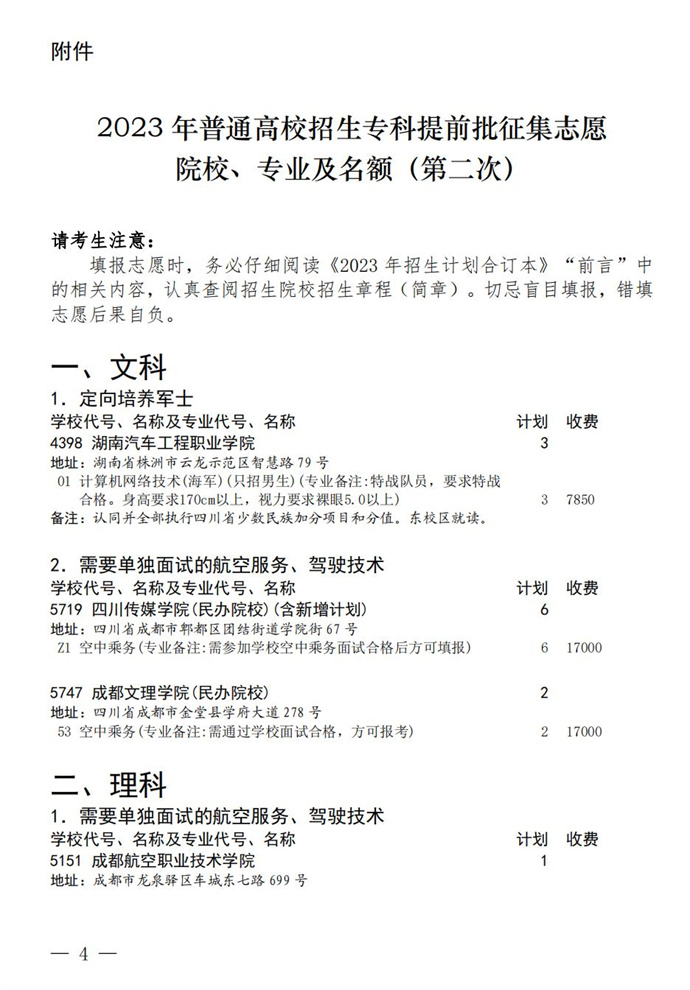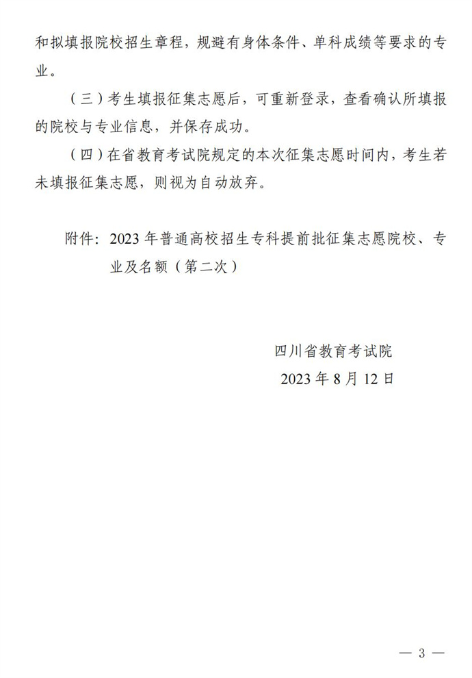 关于专科提前批第二次征集志愿的通知