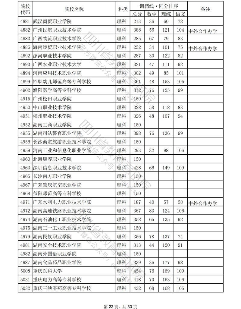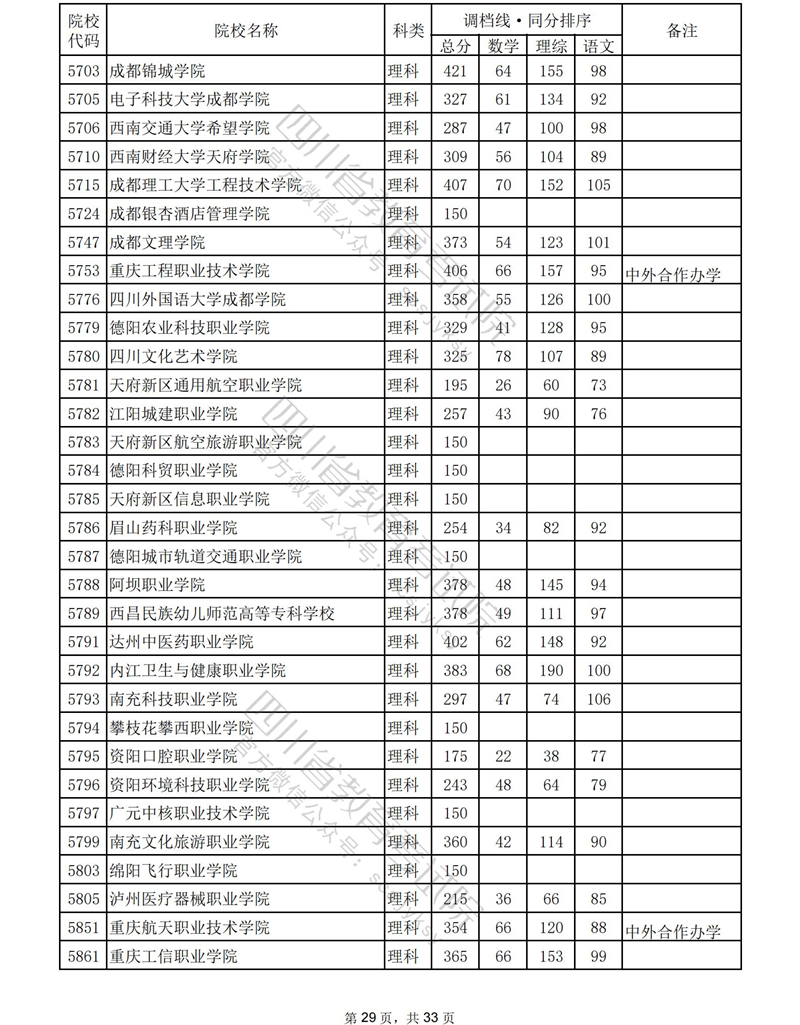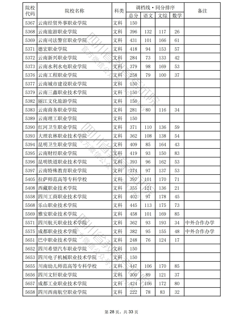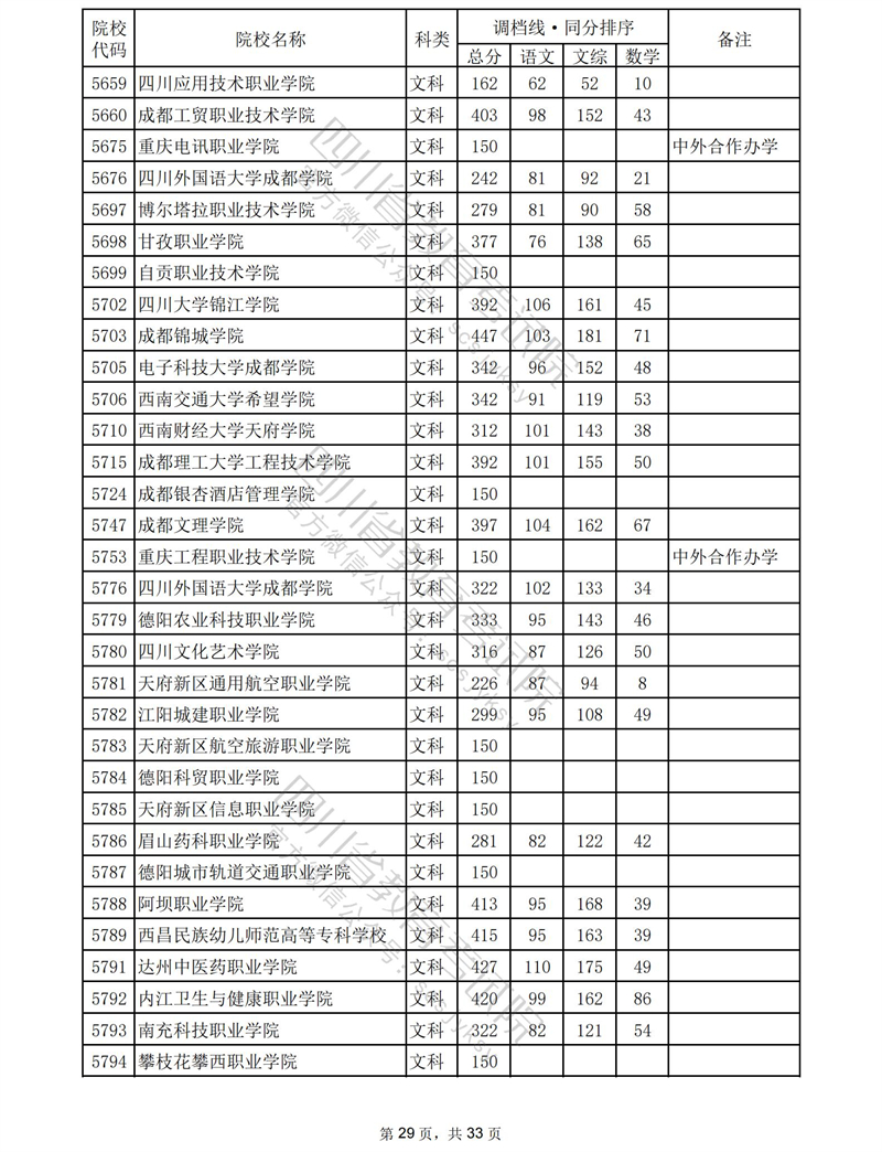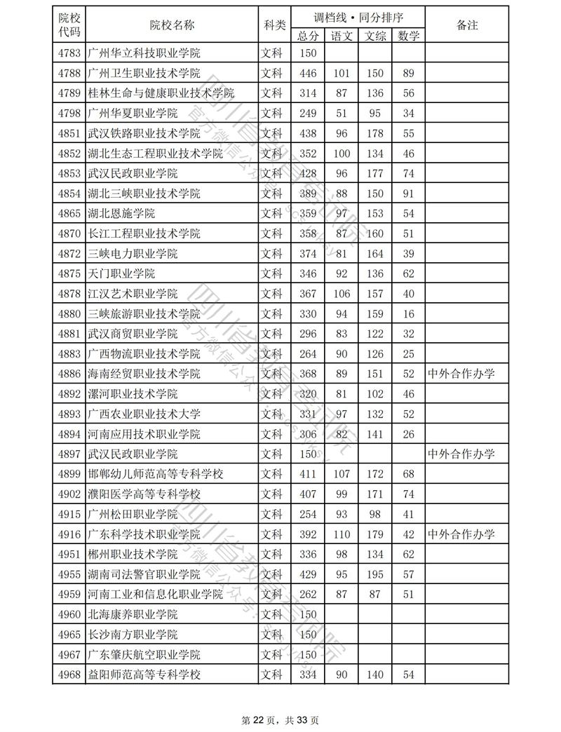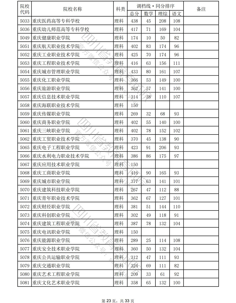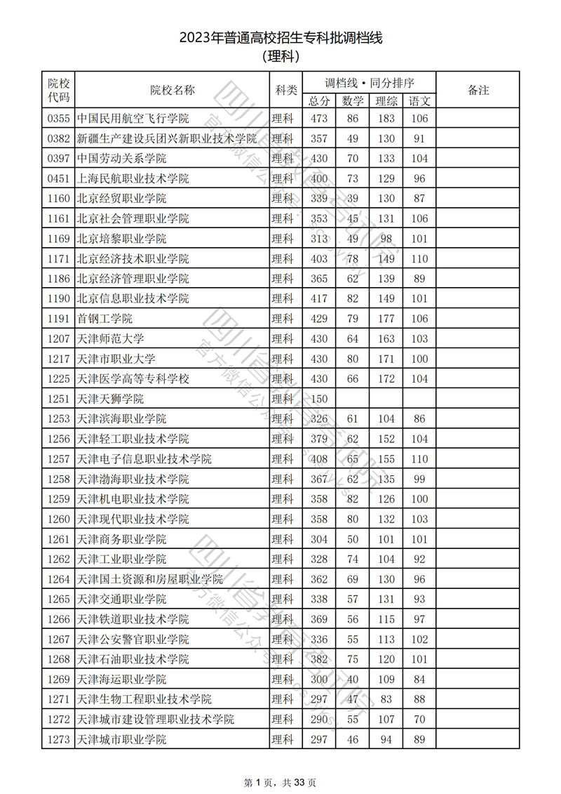 2023年普通高校在川招生专科批录取调档线