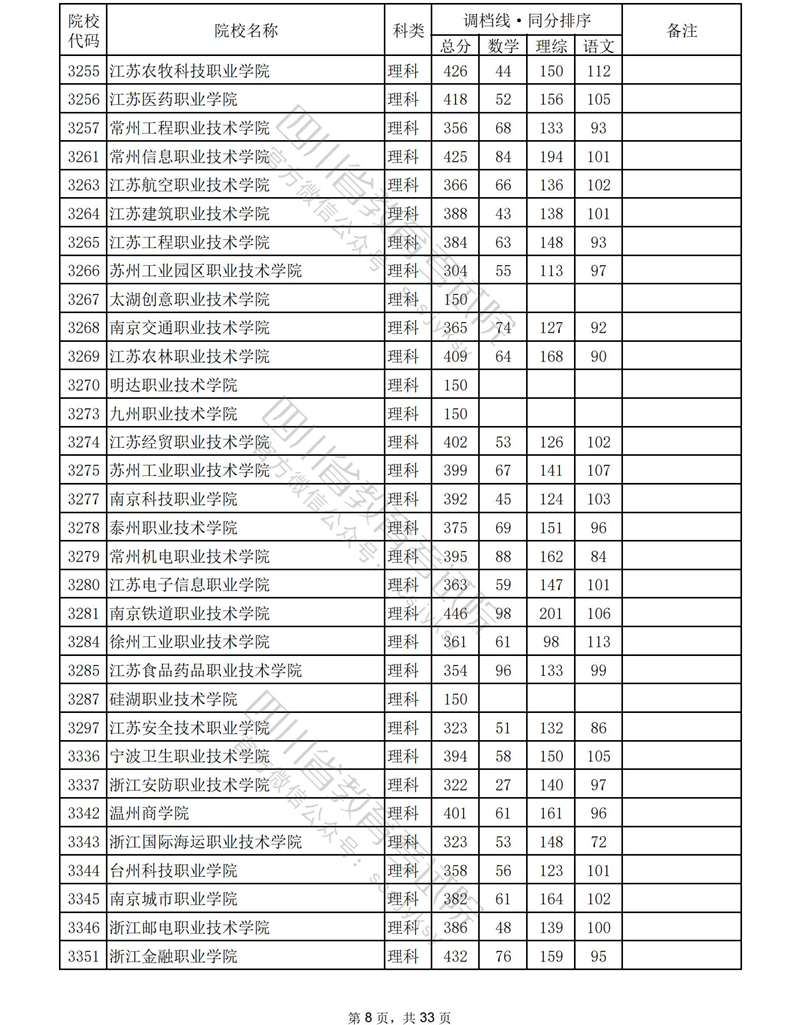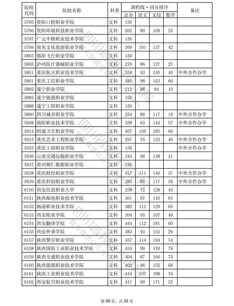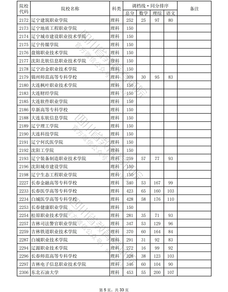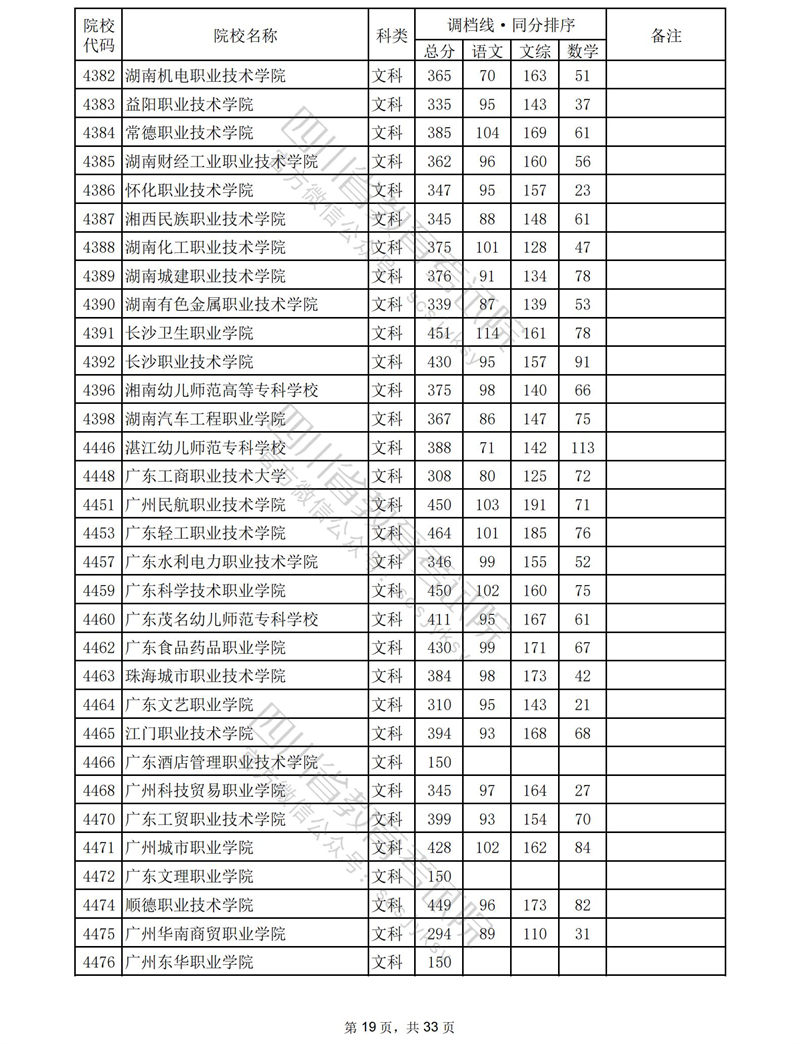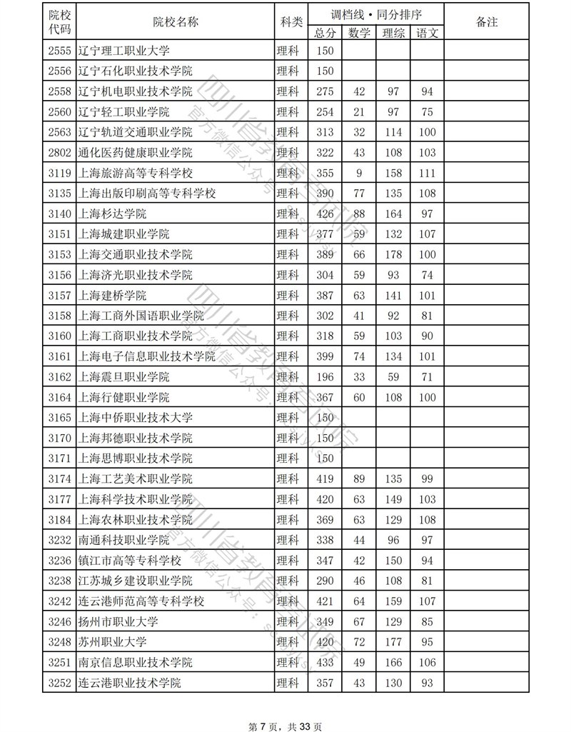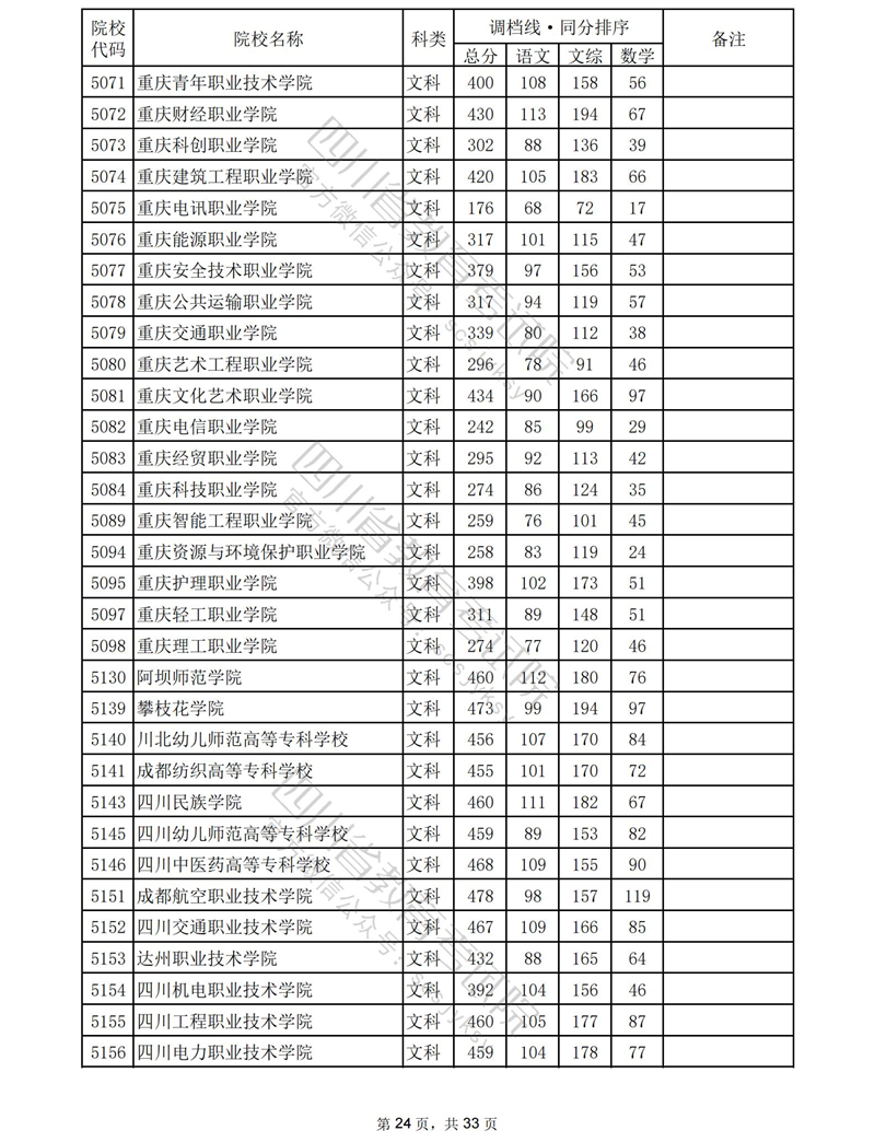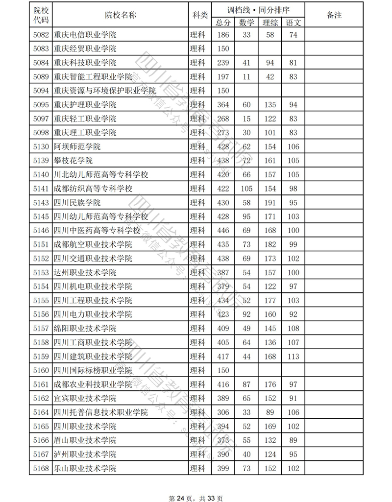 2023年普通高校在川招生专科批录取调档线
