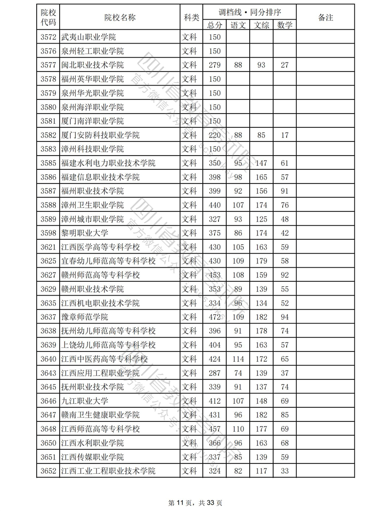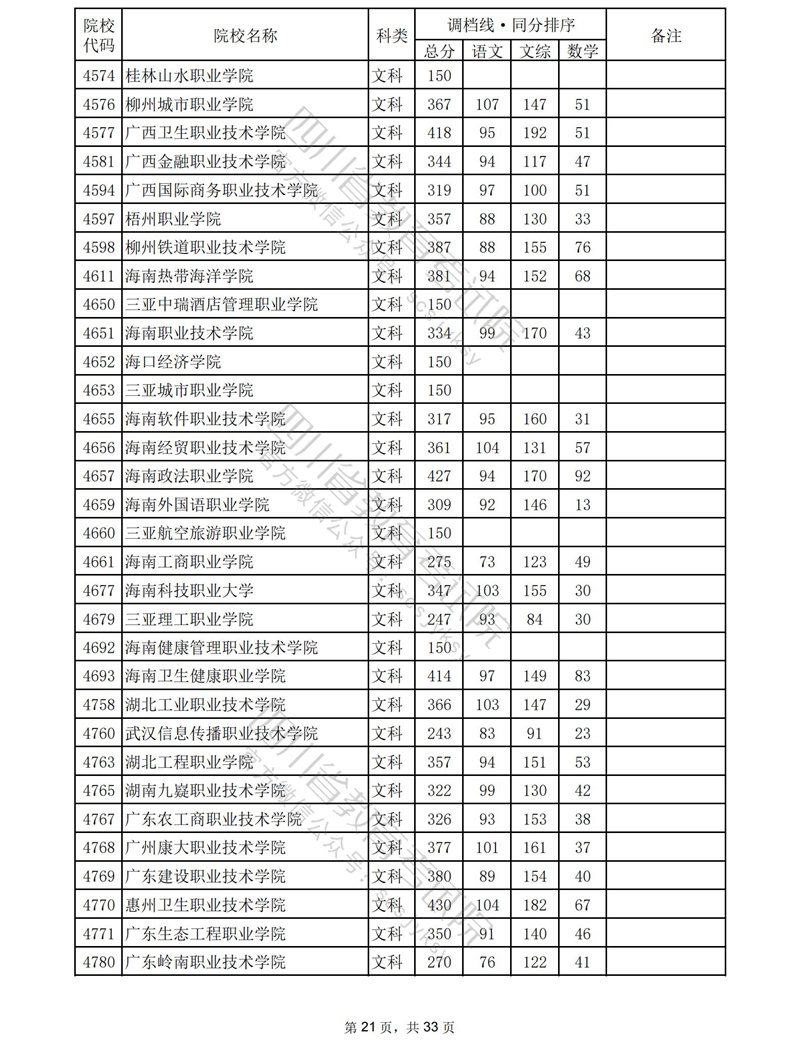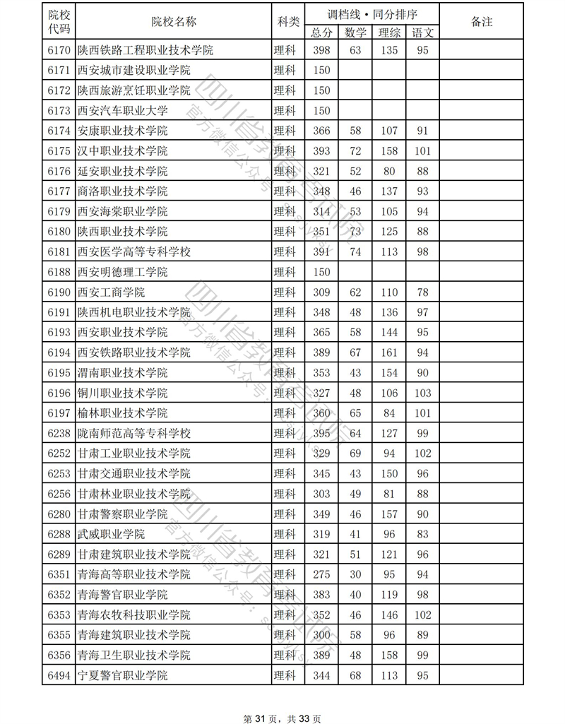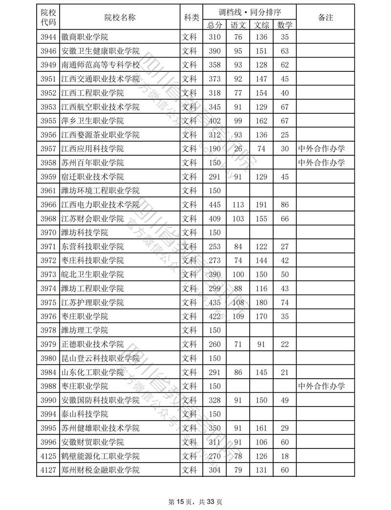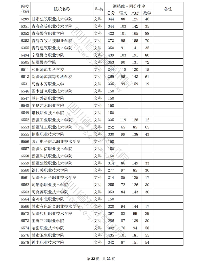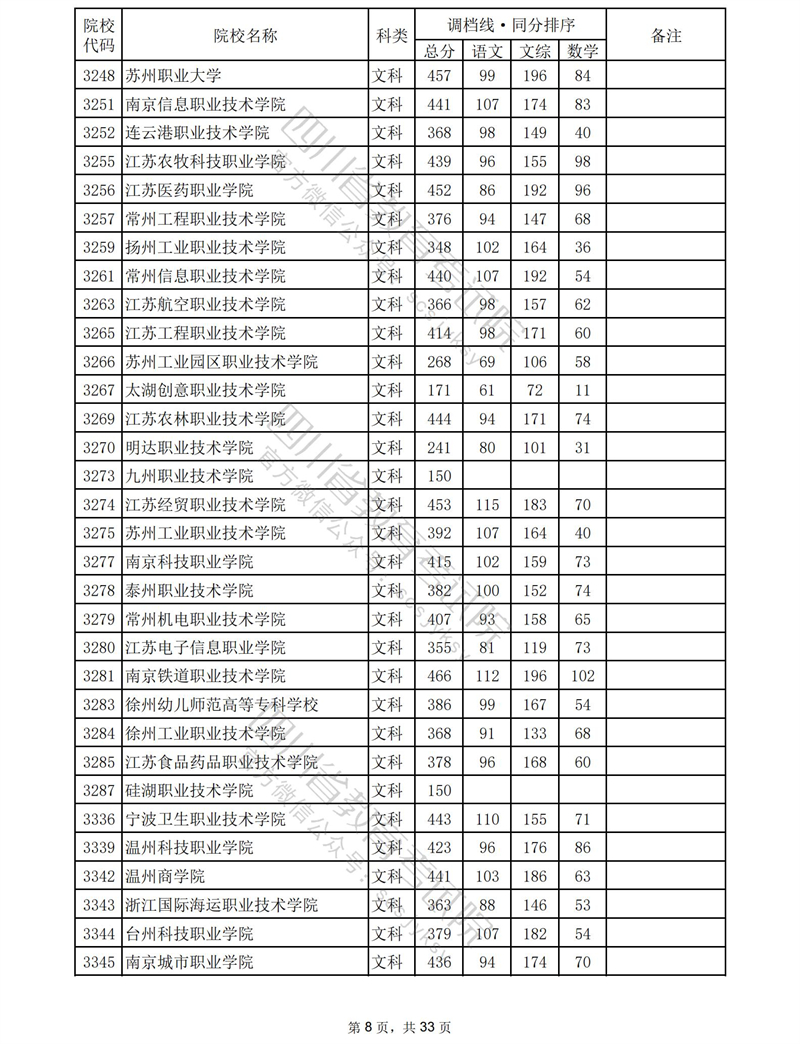 2023年普通高校在川招生专科批录取调档线