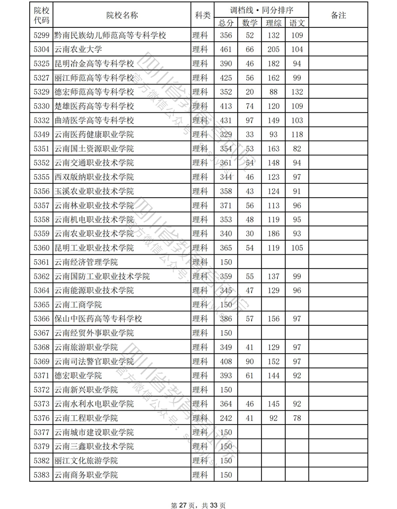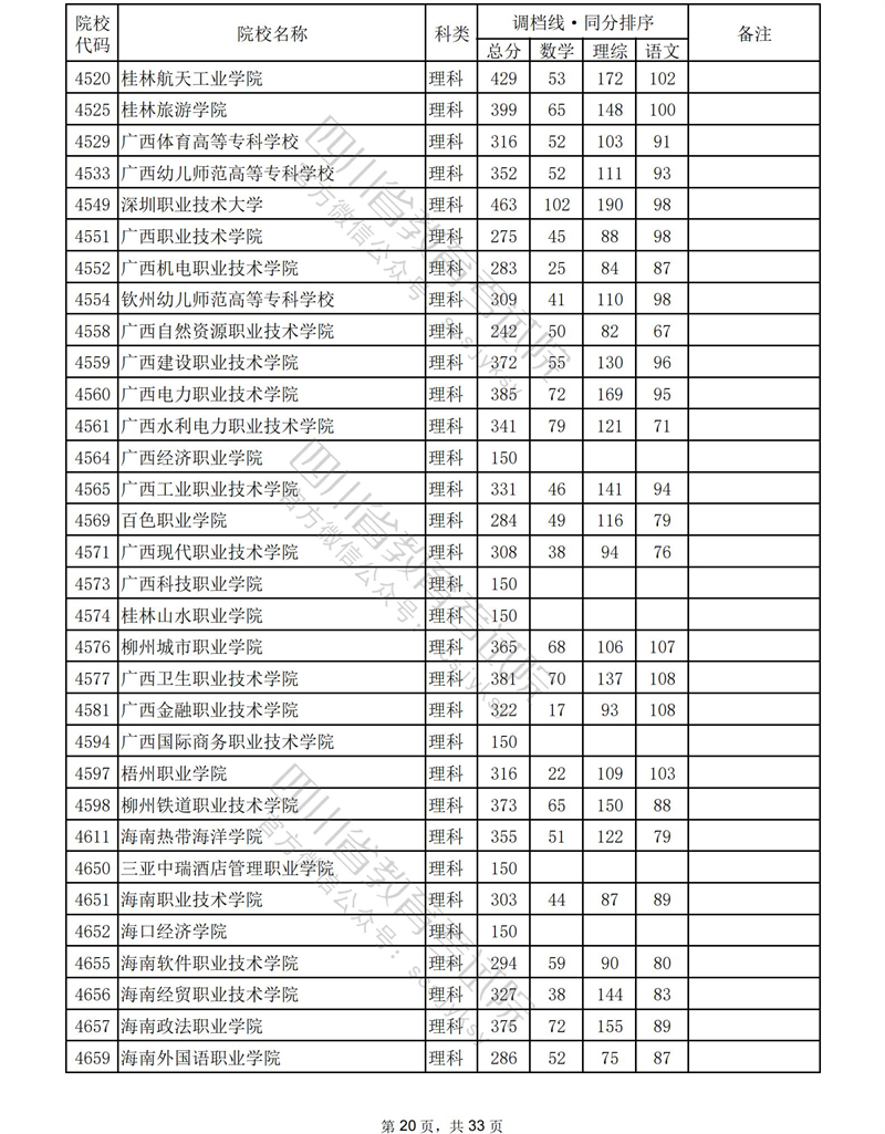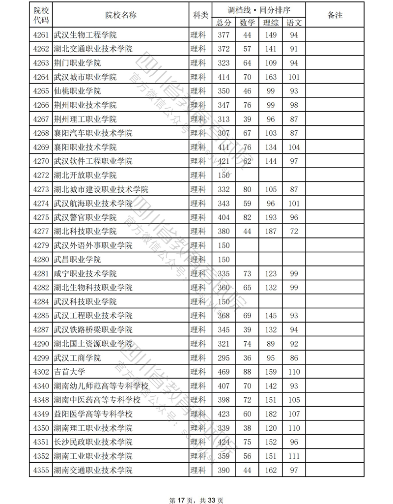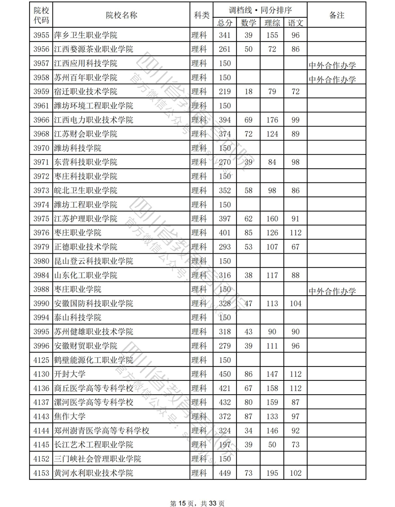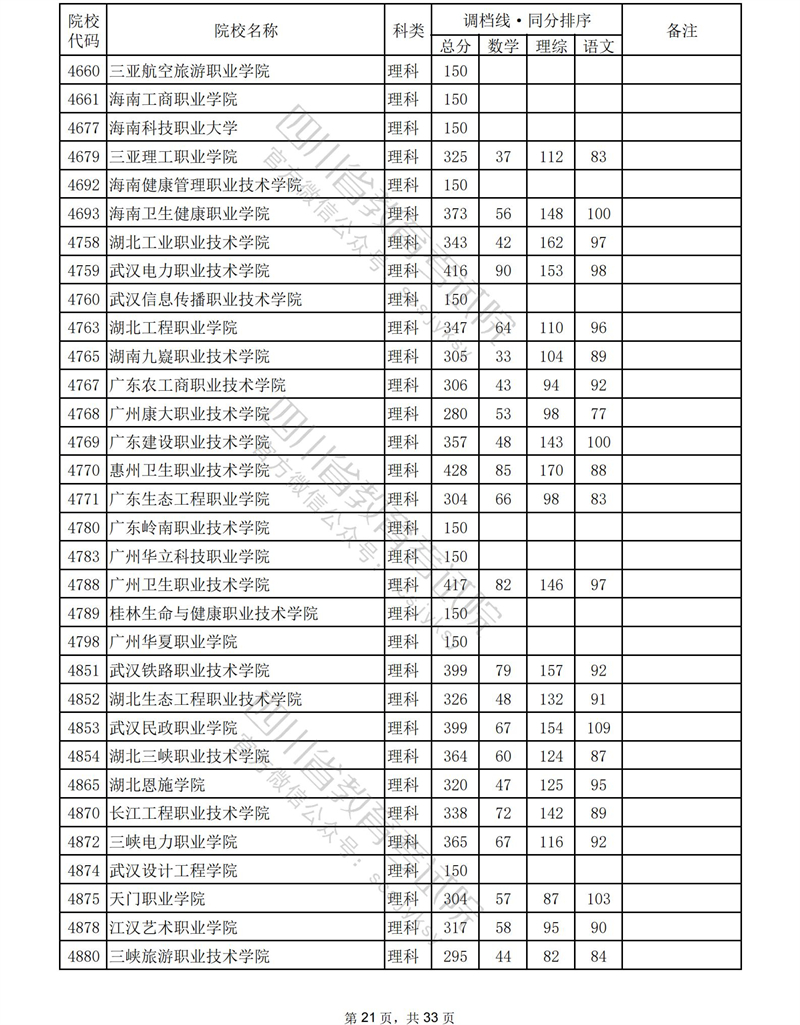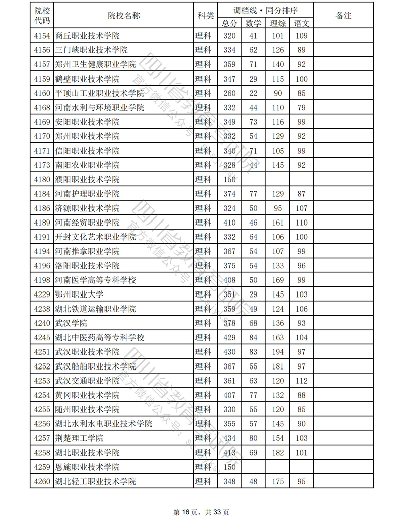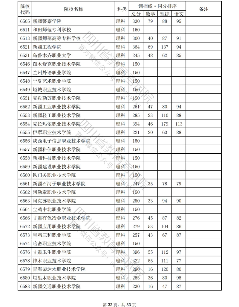 2023年普通高校在川招生专科批录取调档线