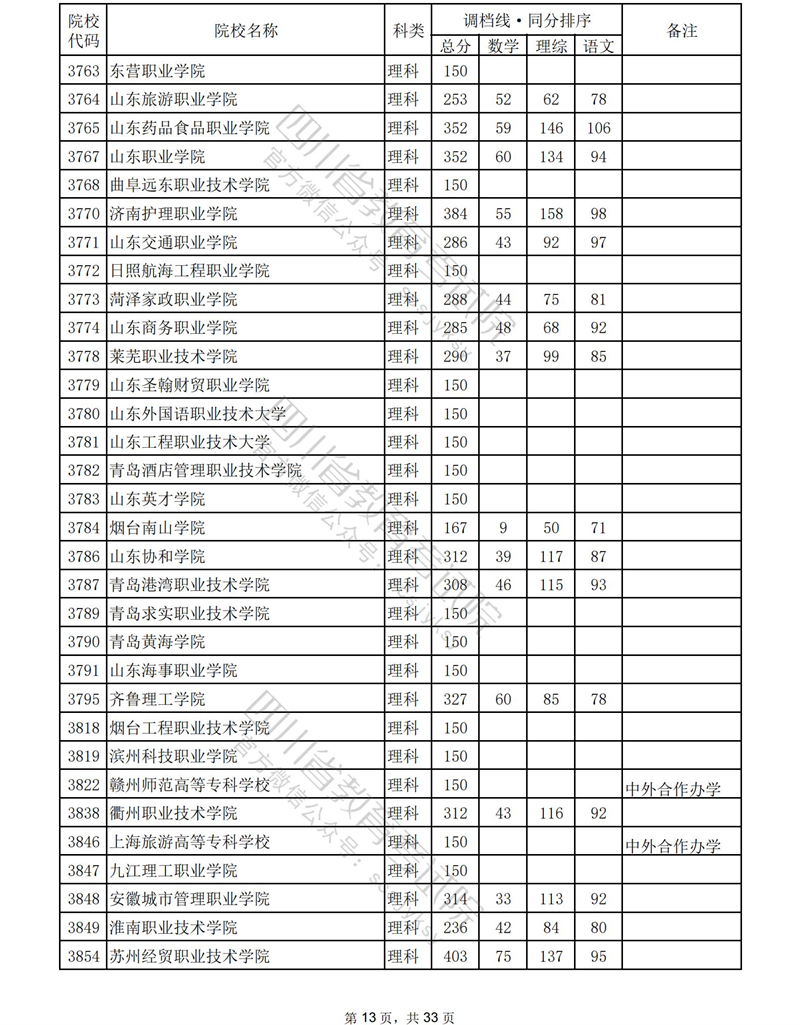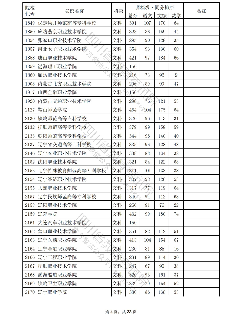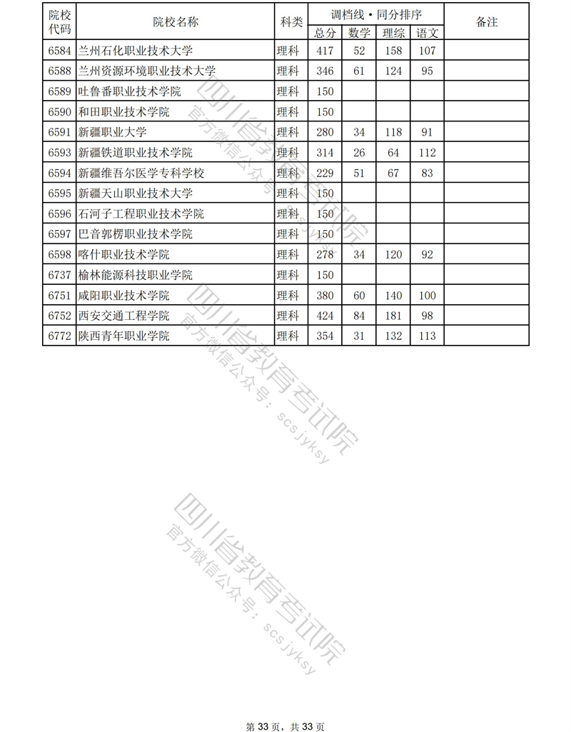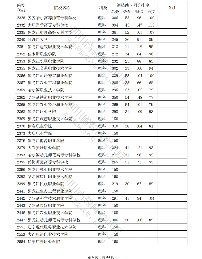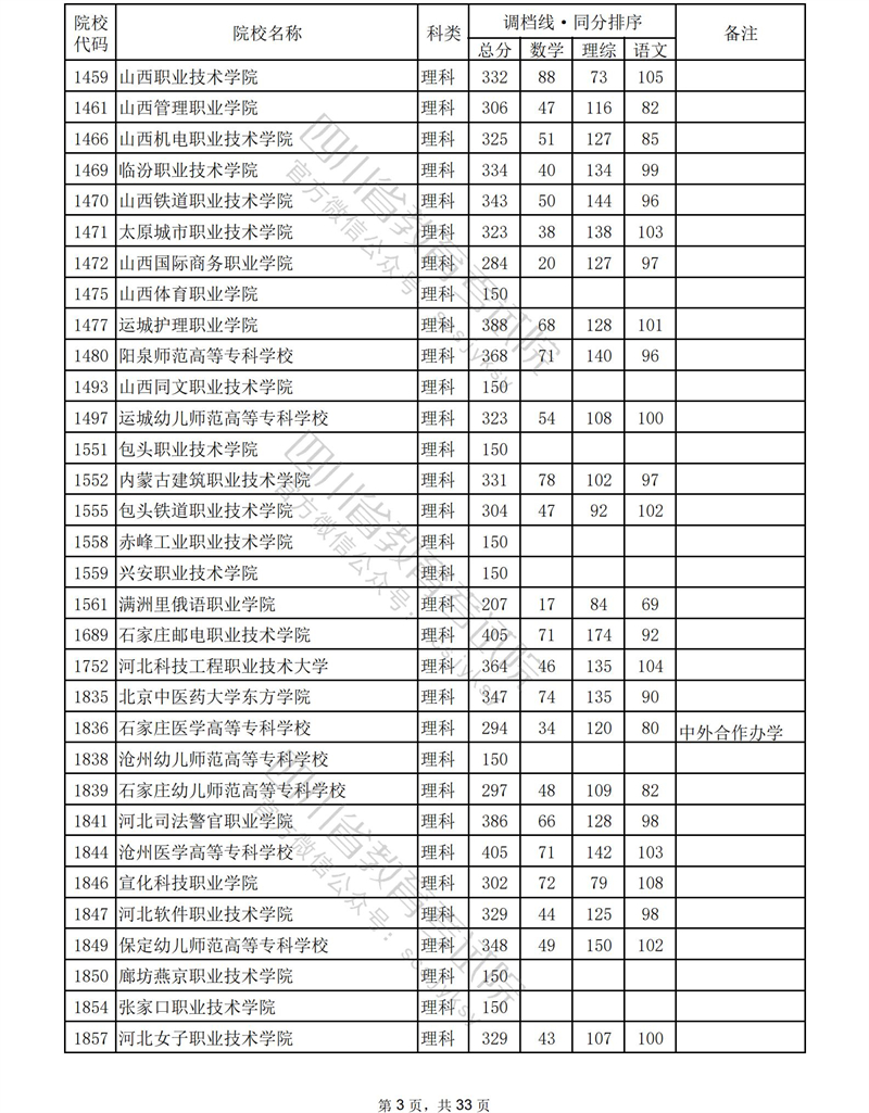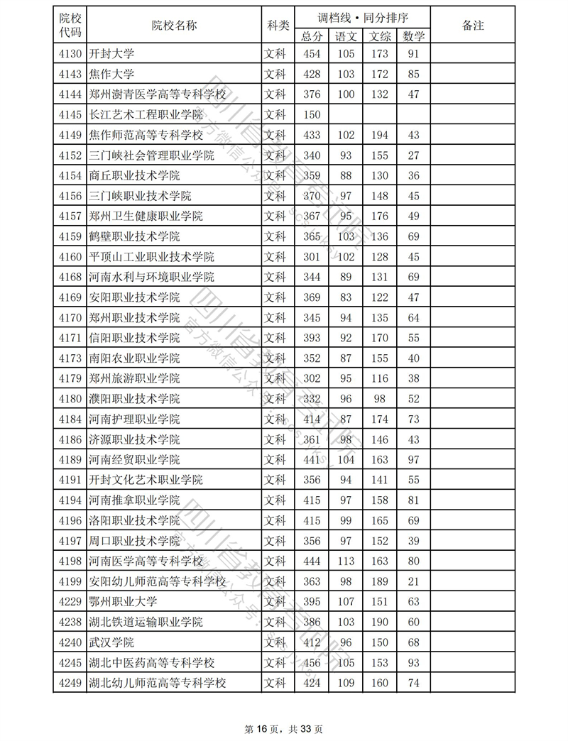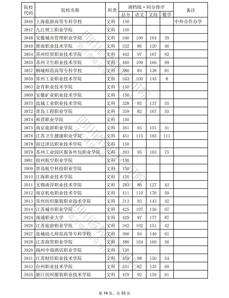 2023年普通高校在川招生专科批录取调档线