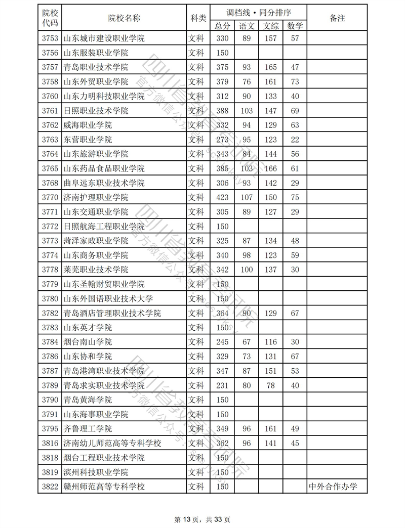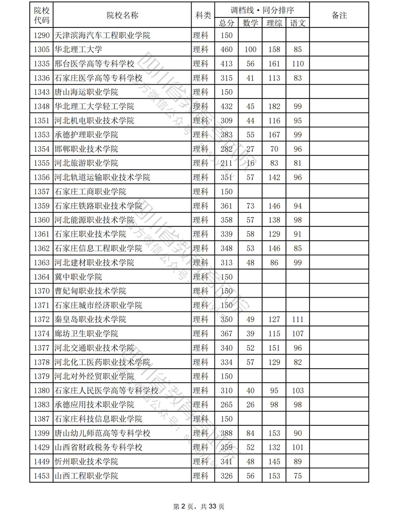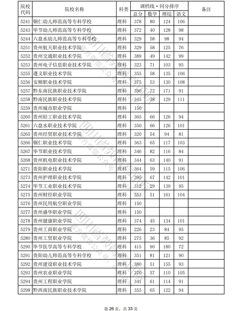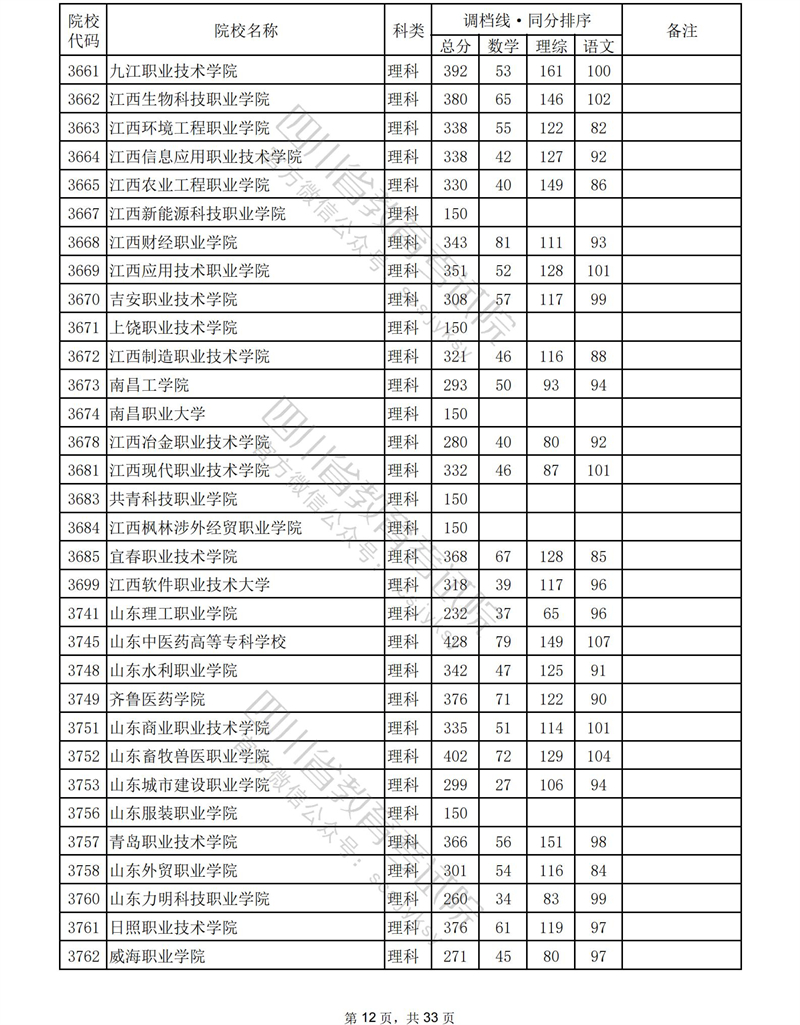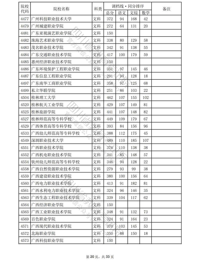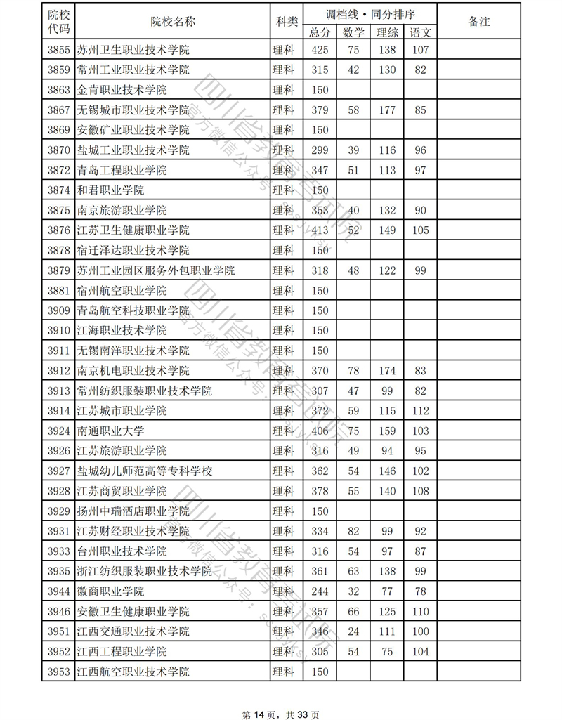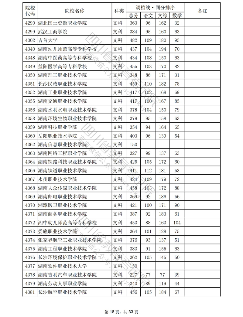 2023年普通高校在川招生专科批录取调档线