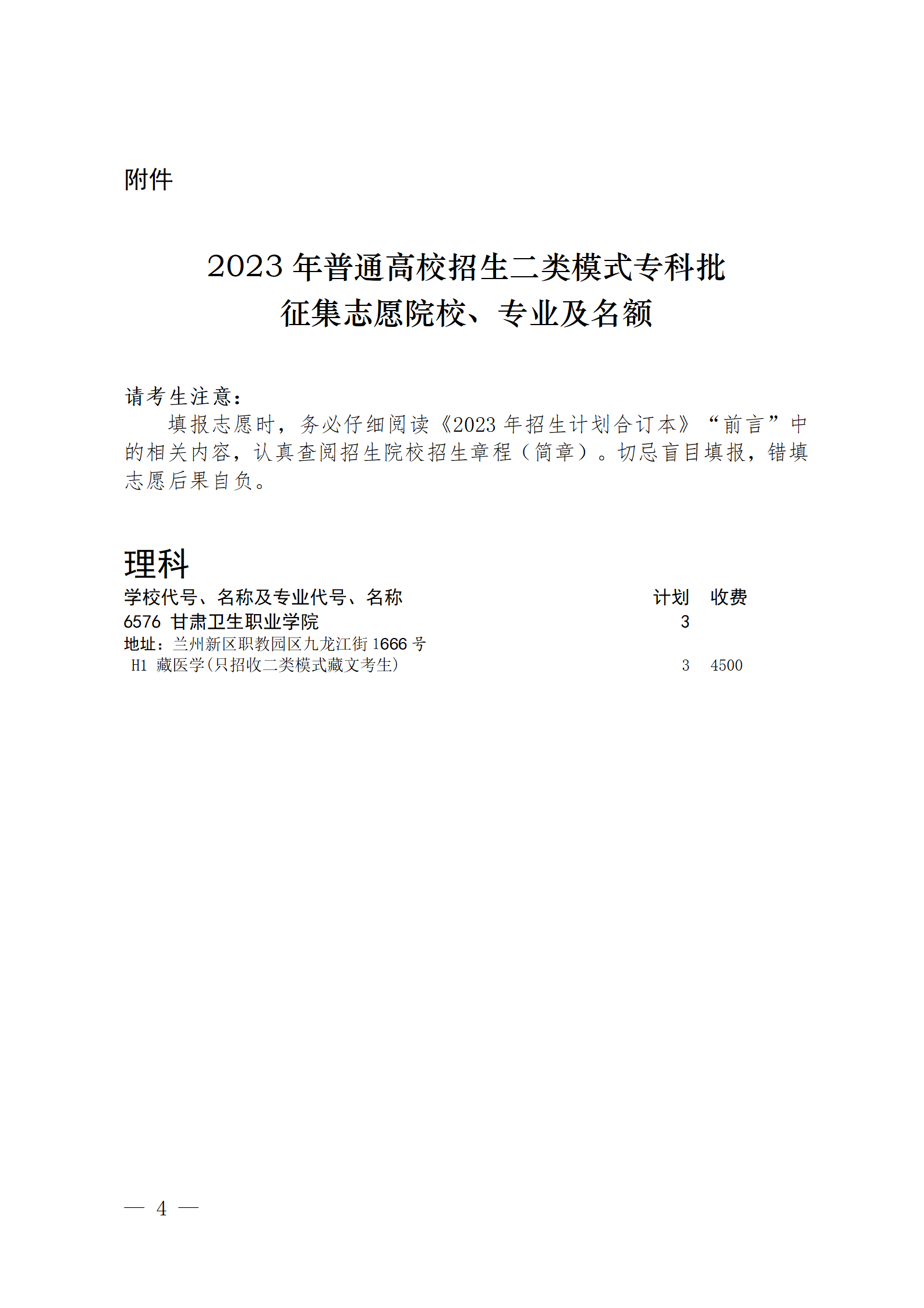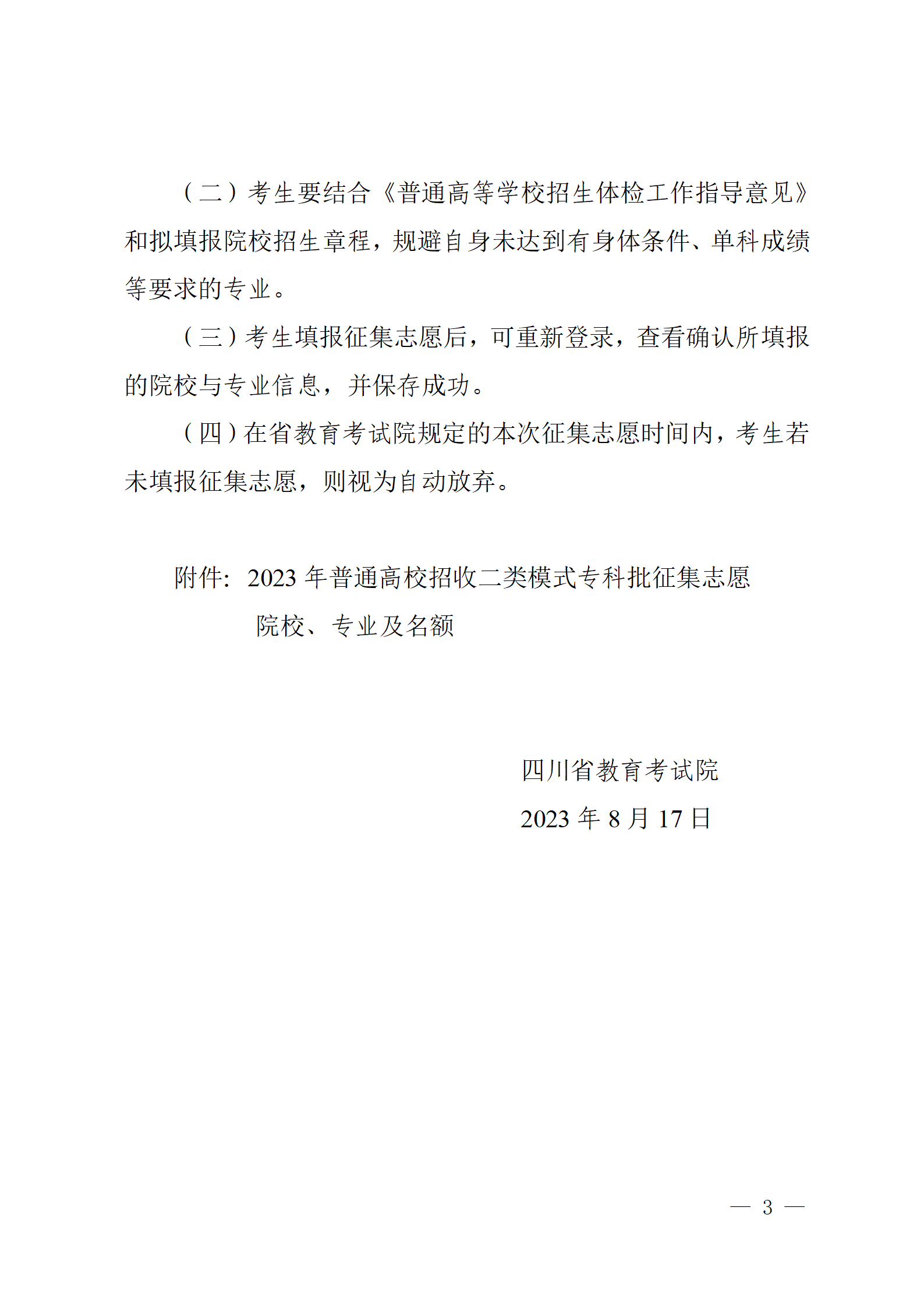 关于普通高校招收二类模式考生专科批未完成计划院校征集志愿的通知