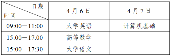 我省2024年普通高校专升本考试于4月6日、7日统一组织进行。各科目考试时间(北京时间)安排如下: