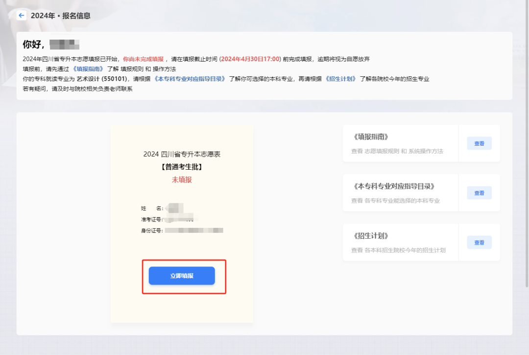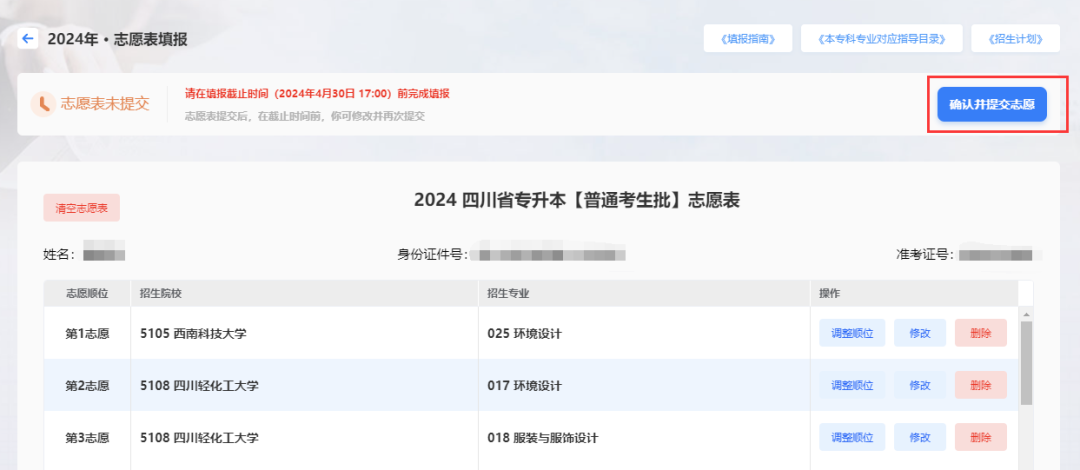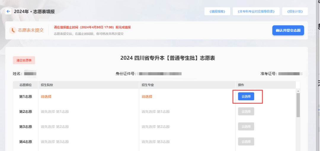 四川省2024年普通高校专升本网上志愿填报操作指南