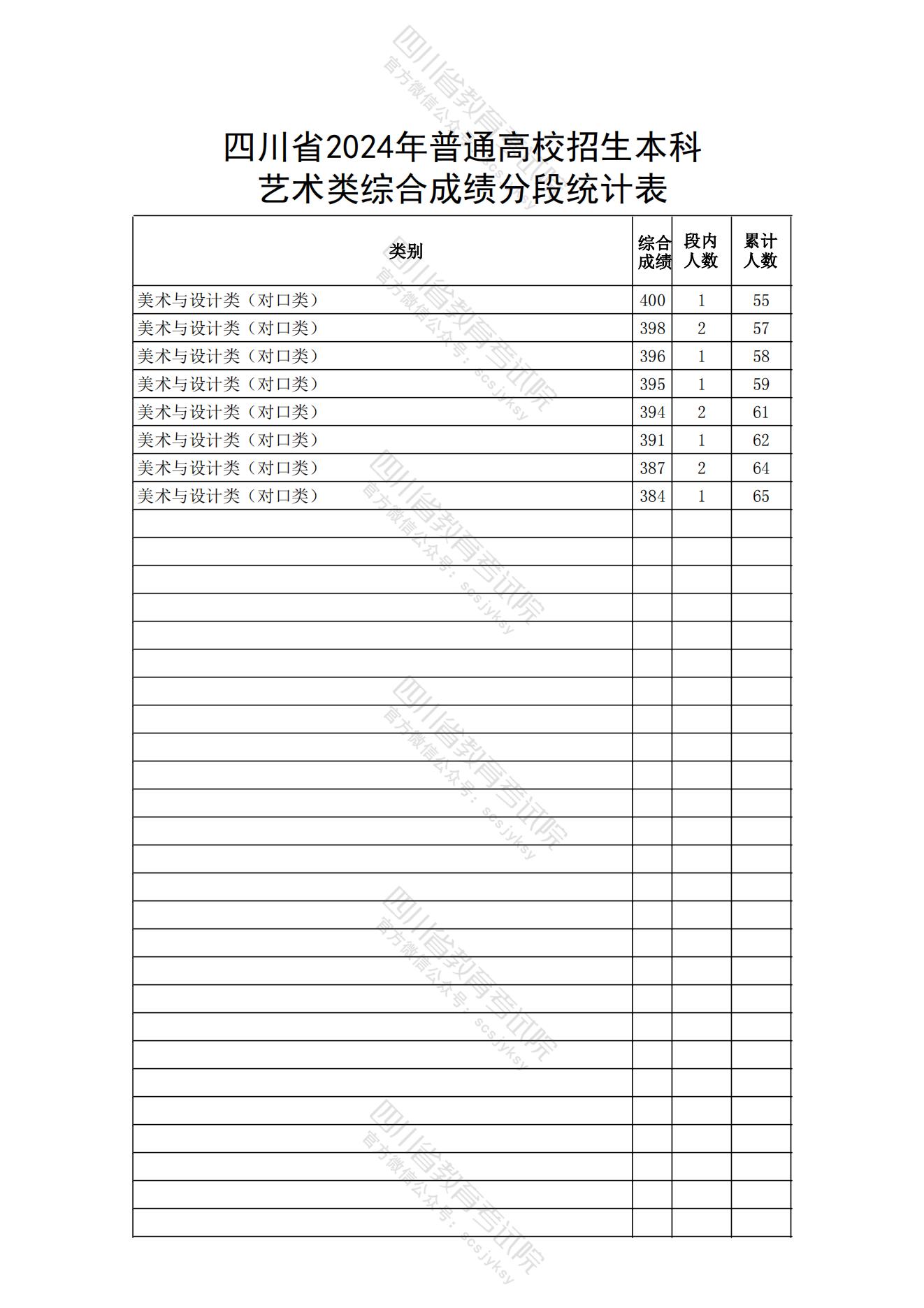 四川省2024年高职单招中职类考生成绩分段统计表