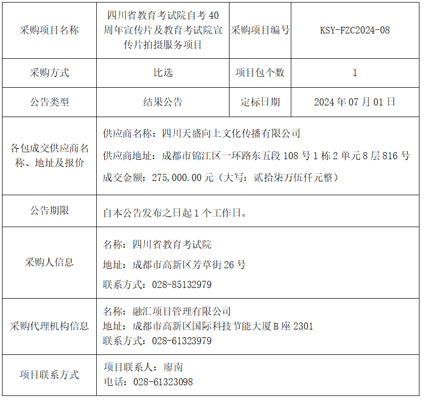 快乐彩18新利自考40周年宣传片及教育考试院宣传片拍摄服务项目 (成交)结果公告