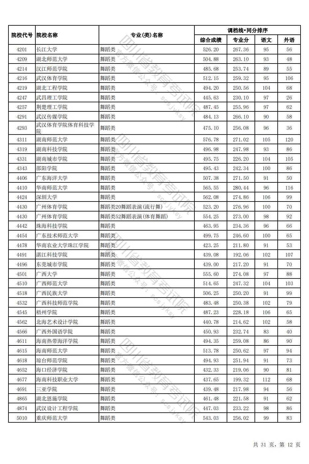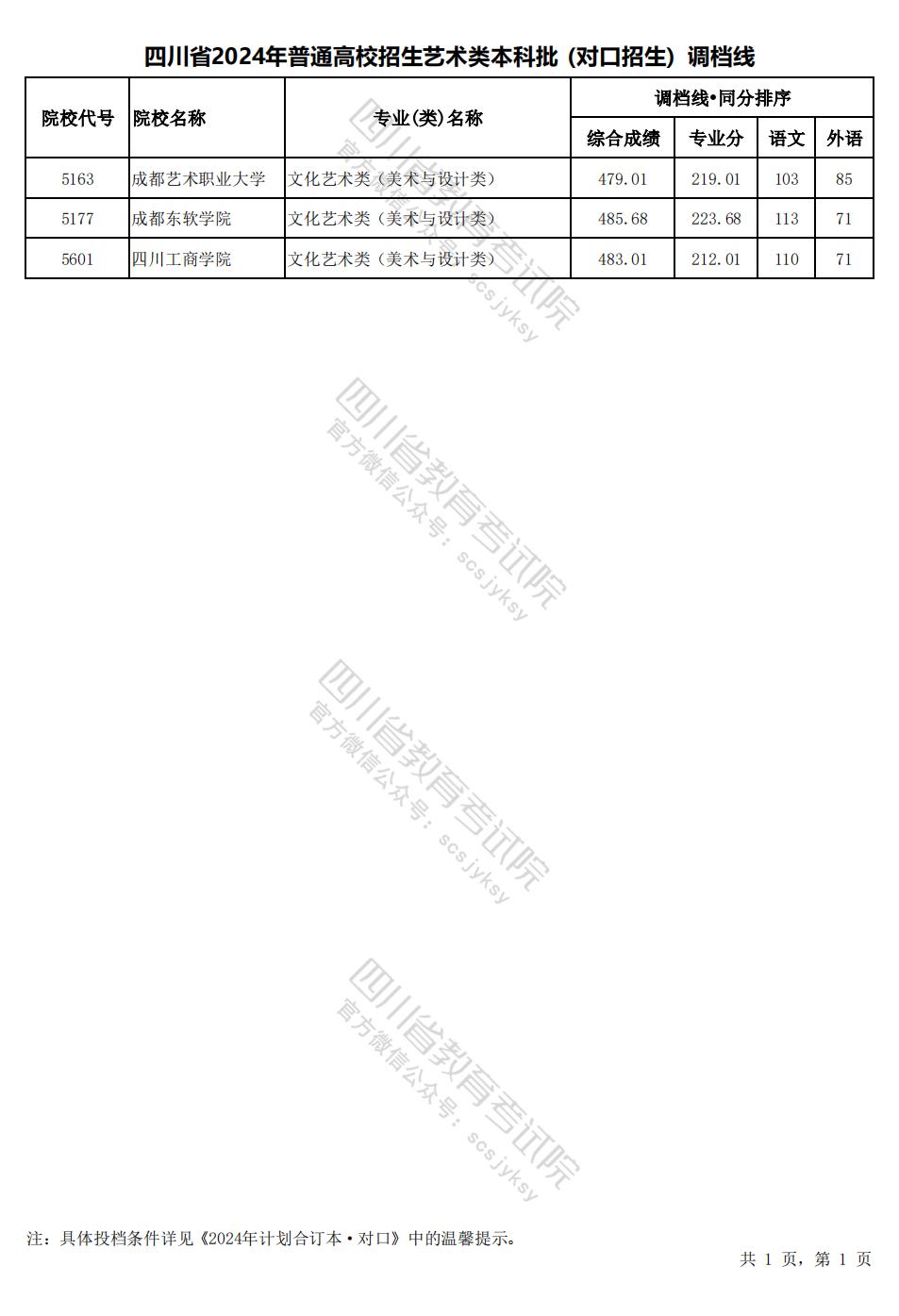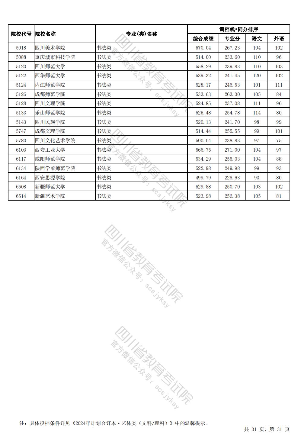重磅!四川省2024年普通高校招生艺术体育类本科批调档线出炉