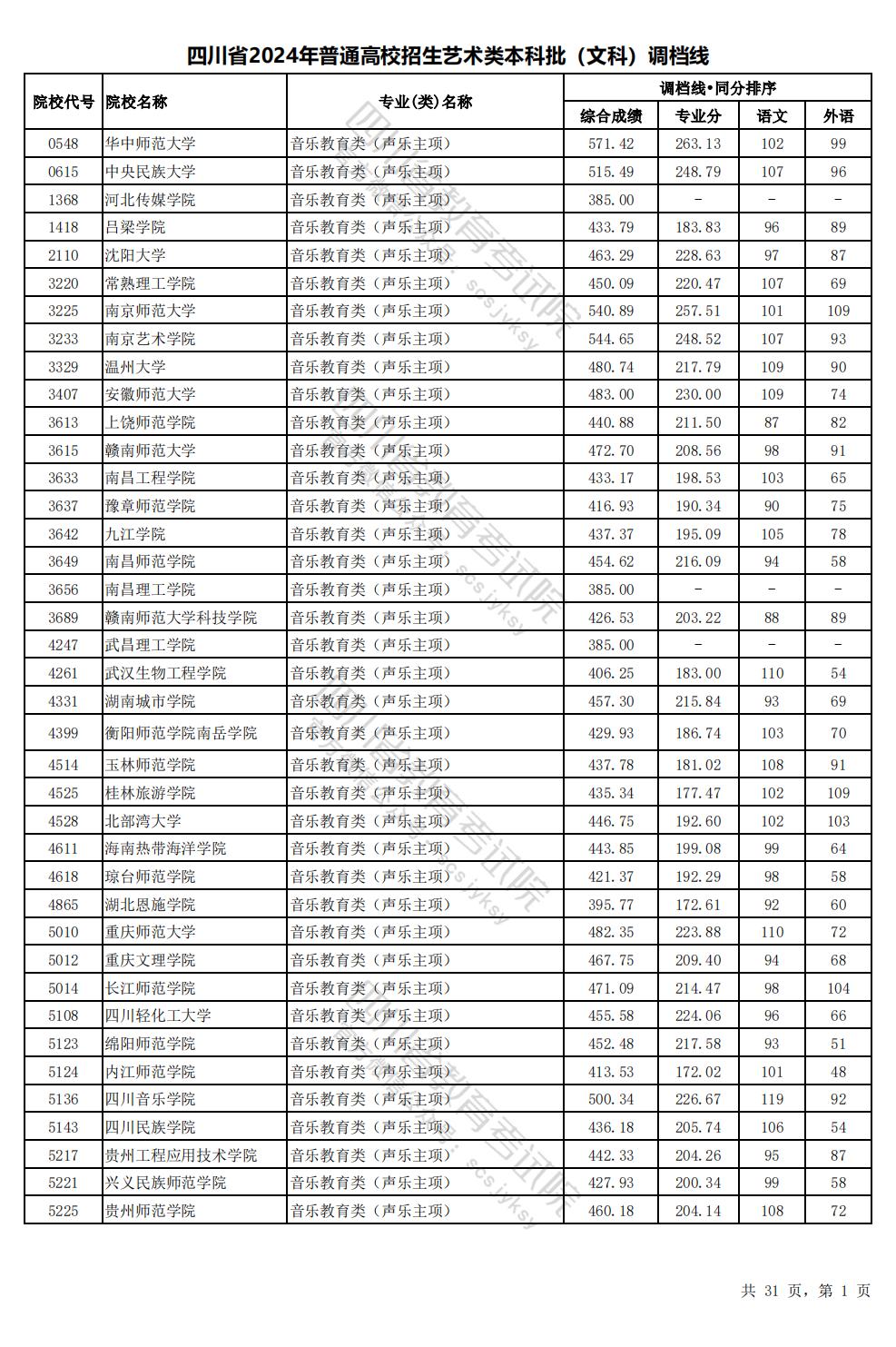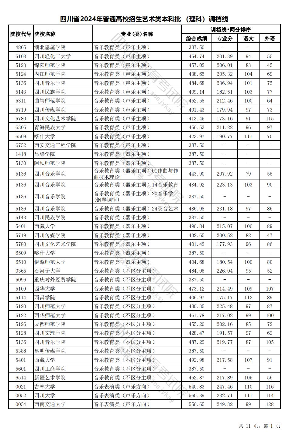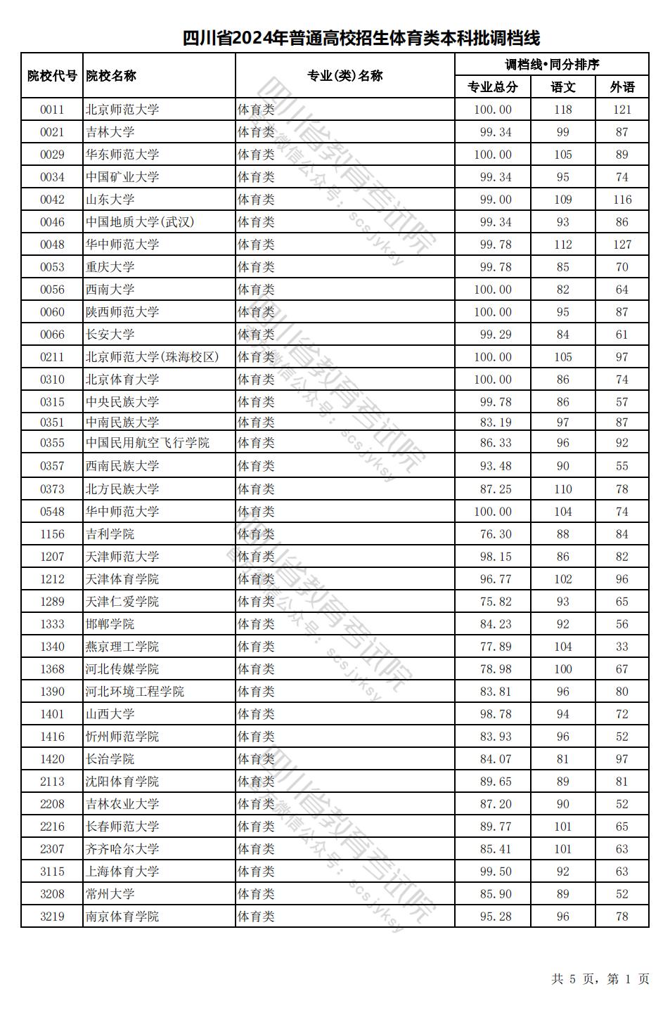 重磅!四川省2024年普通高校招生艺术体育类本科批调档线出炉
