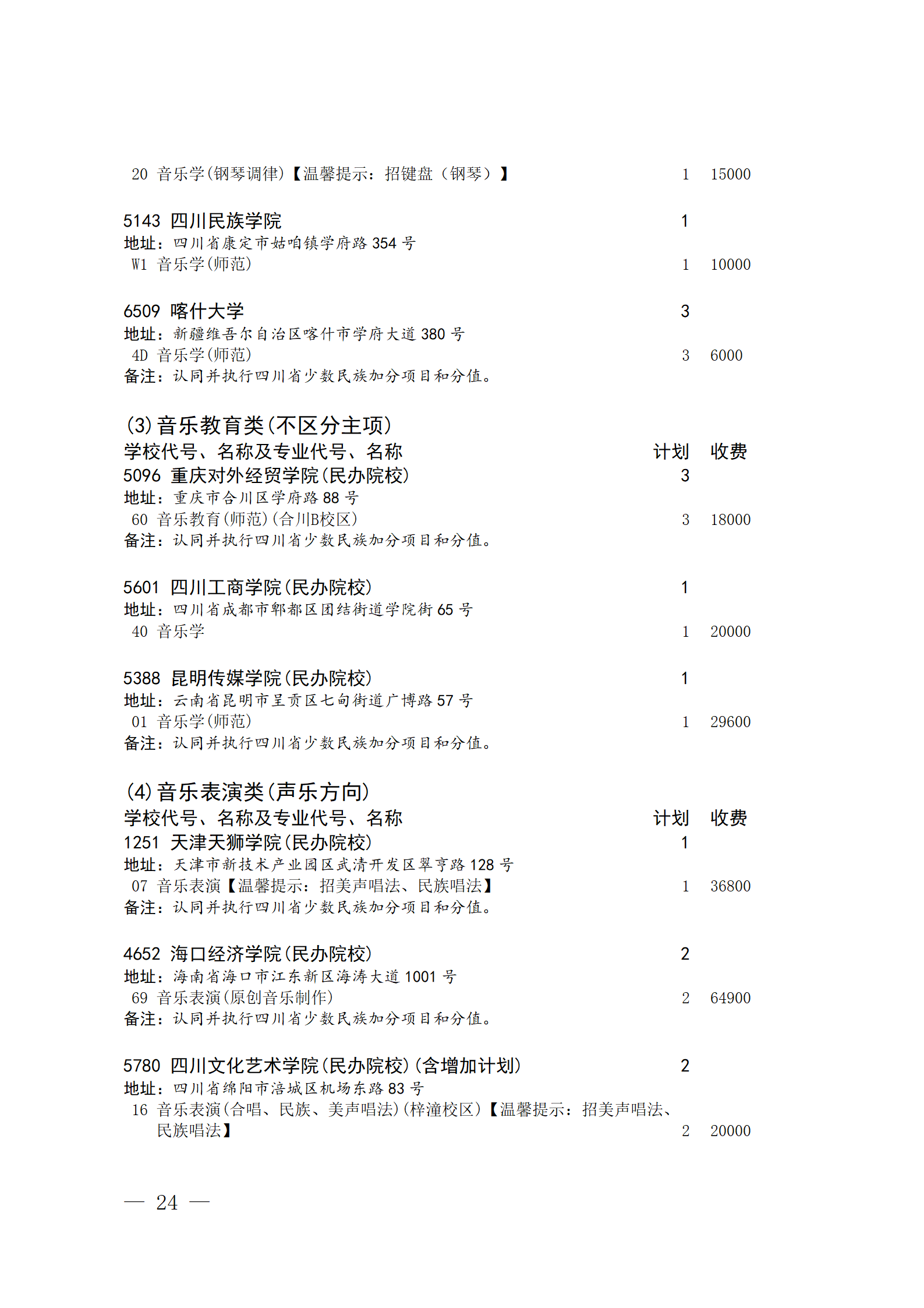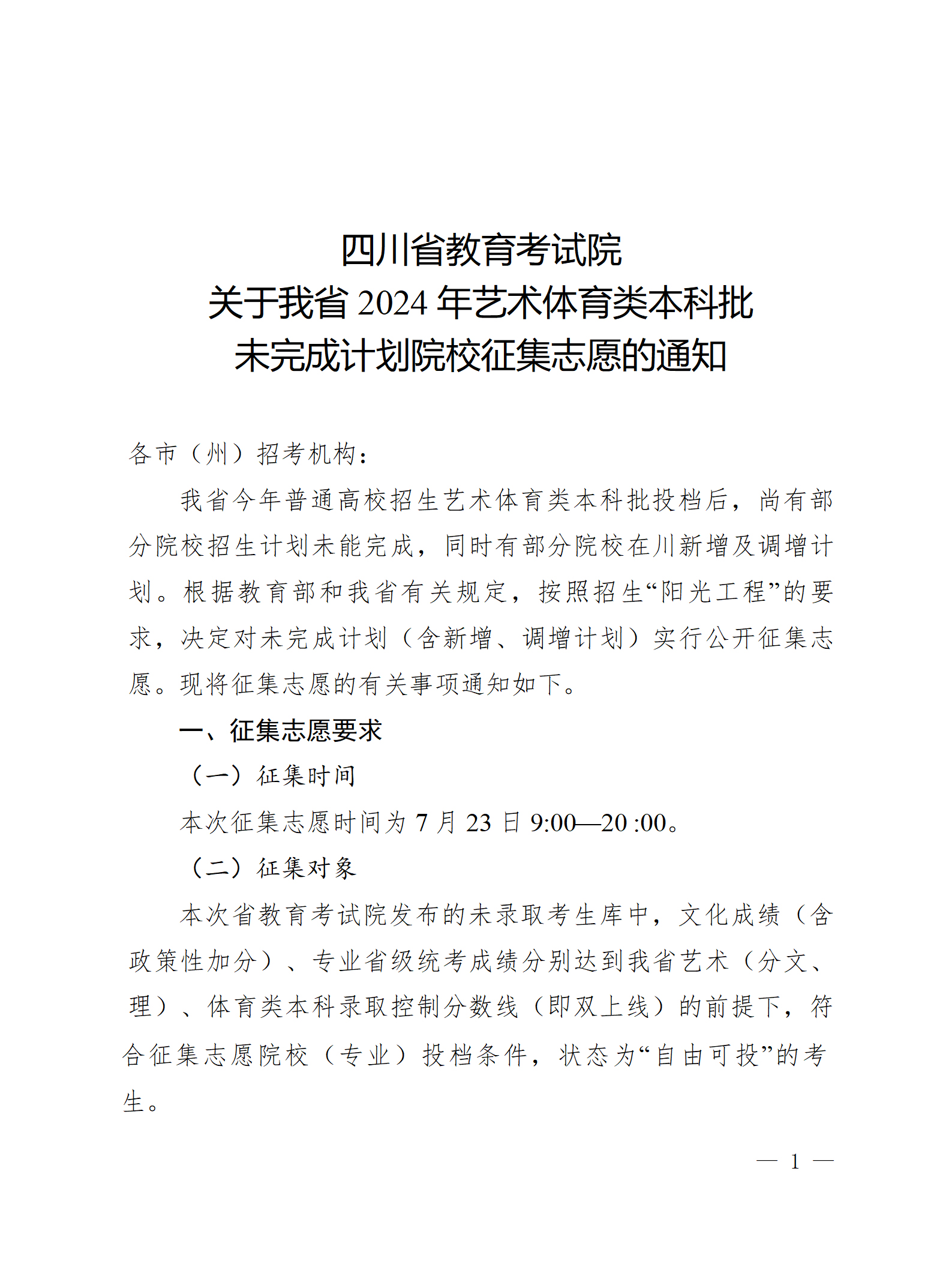关于我省2024年艺术体育类本科批未完成计划院校征集志愿的通知