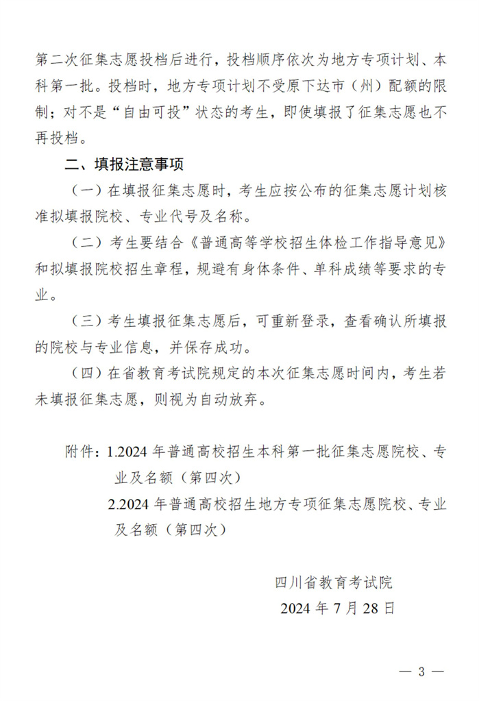 关于本科第一批、地方专项计划第四次征集志愿的通知