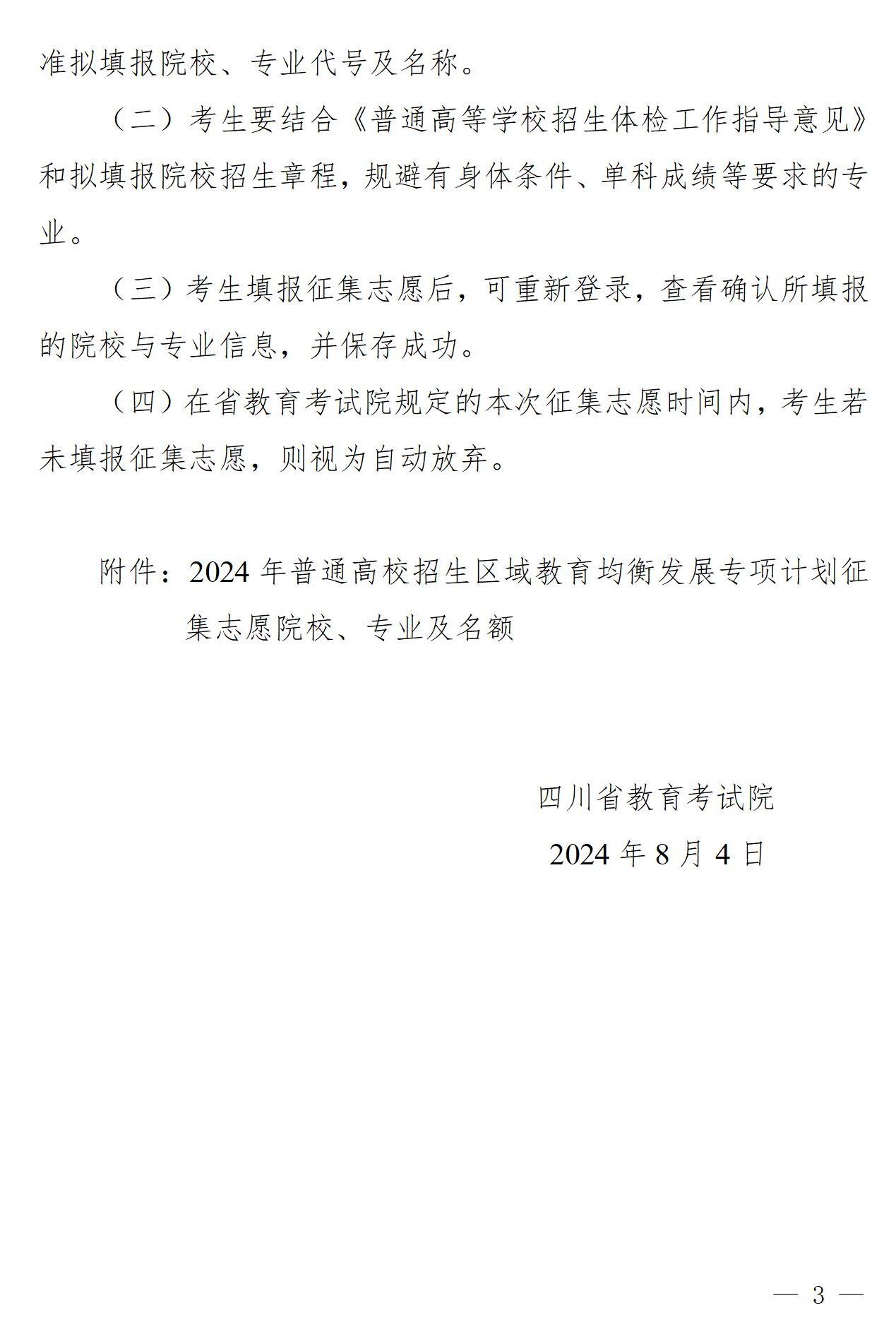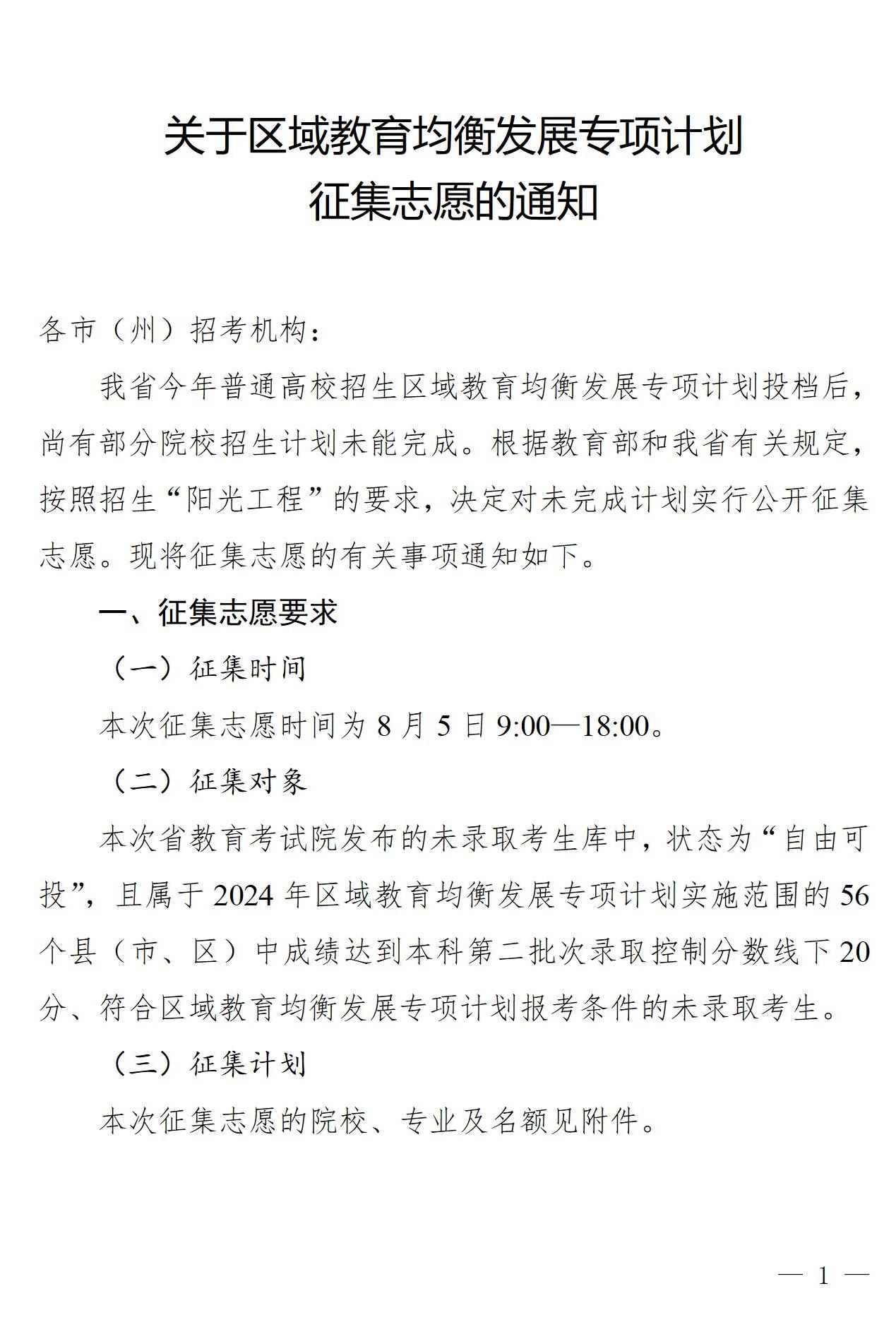 关于区域教育均衡发展专项计划征集志愿的通知