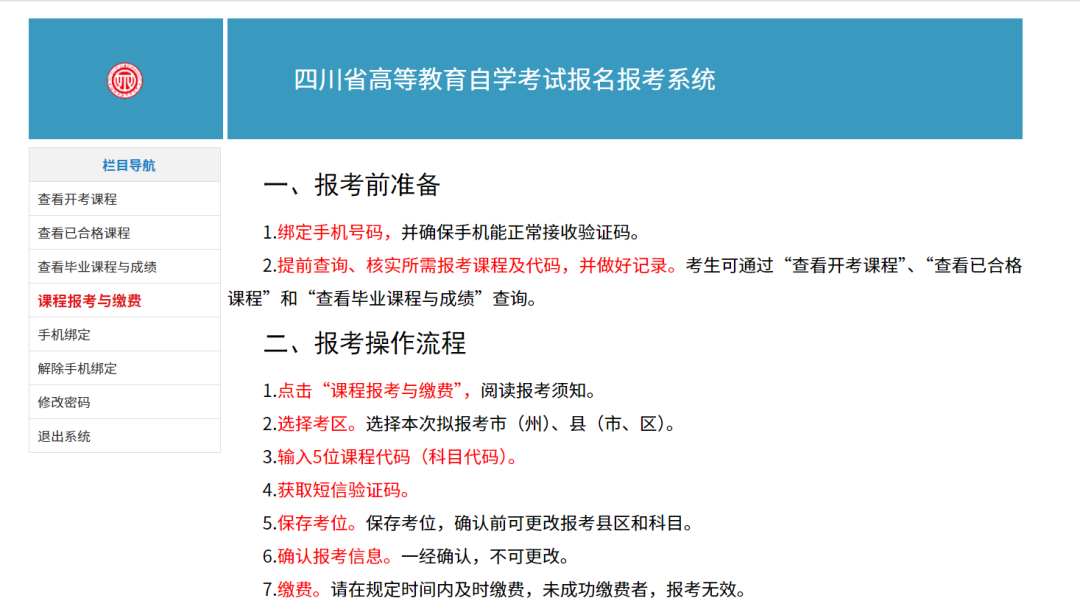 四川省高等教育自学考试新生注册及课程报考系统操作指南
