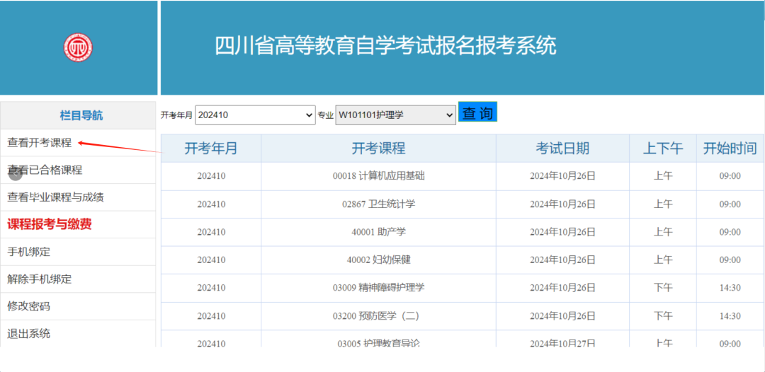 点击左边菜单栏“查看开考课程”可以了解到本次有哪些课程是开考的。