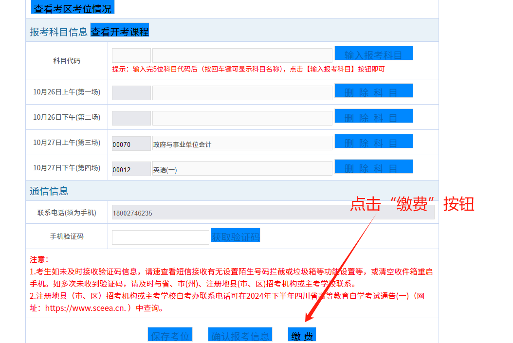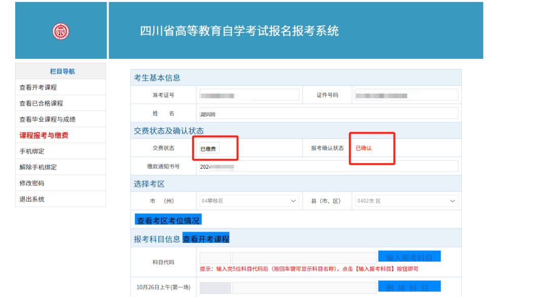 (2)报考课程一经缴费成功,则无法更换考区和更改科目信息,也不得再次报考(即使考生未报考的考试单元在该考区仍有考位容量)。