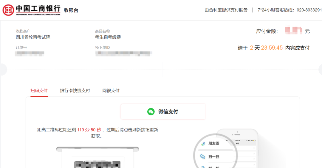 4.在支付页核对订单信息,核对无误后,进行扫码支付。