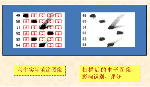 ▶若未正确修改,会影响计算机识别、评分,如下图所示: