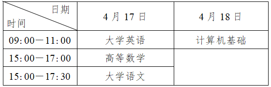 我省2025年普通高校专升本考试于2025年4月17日、18日统一组织进行。各科目考试时间(北京时间)安排如下:
