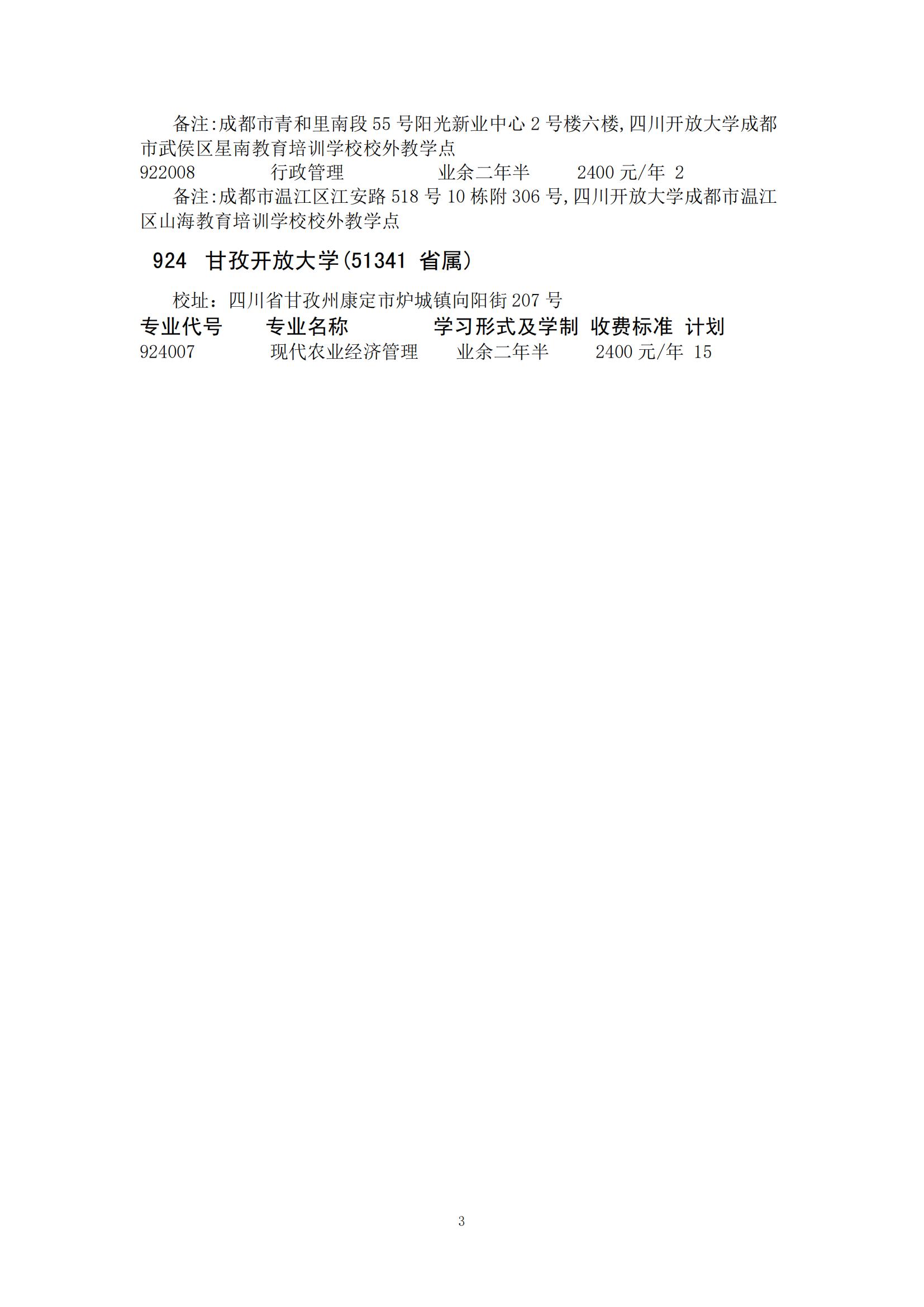 四川省2024年成人高校招生录取征集志愿的院校、专业及名额