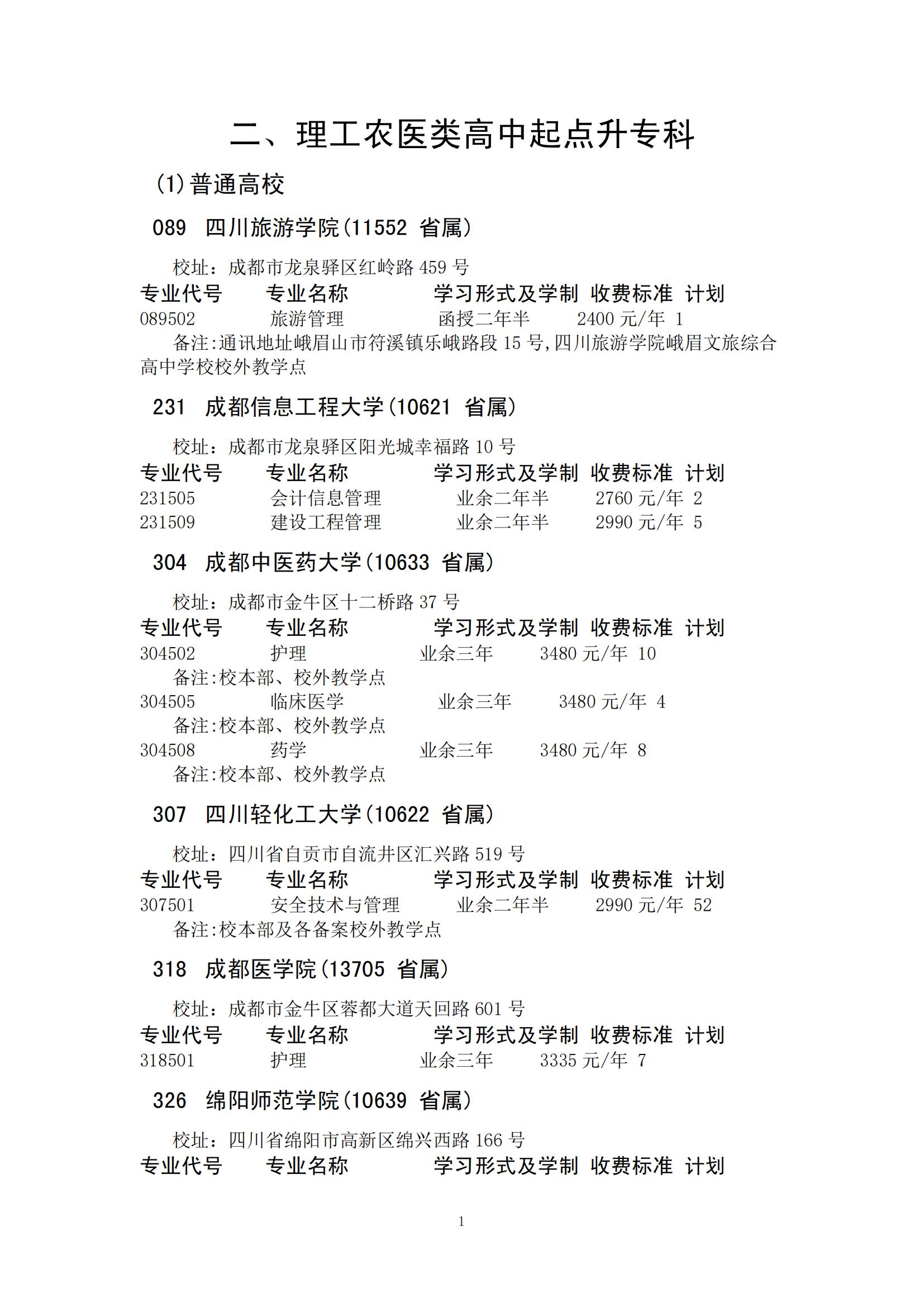 四川省2025年普通高校专升本招生专业及计划