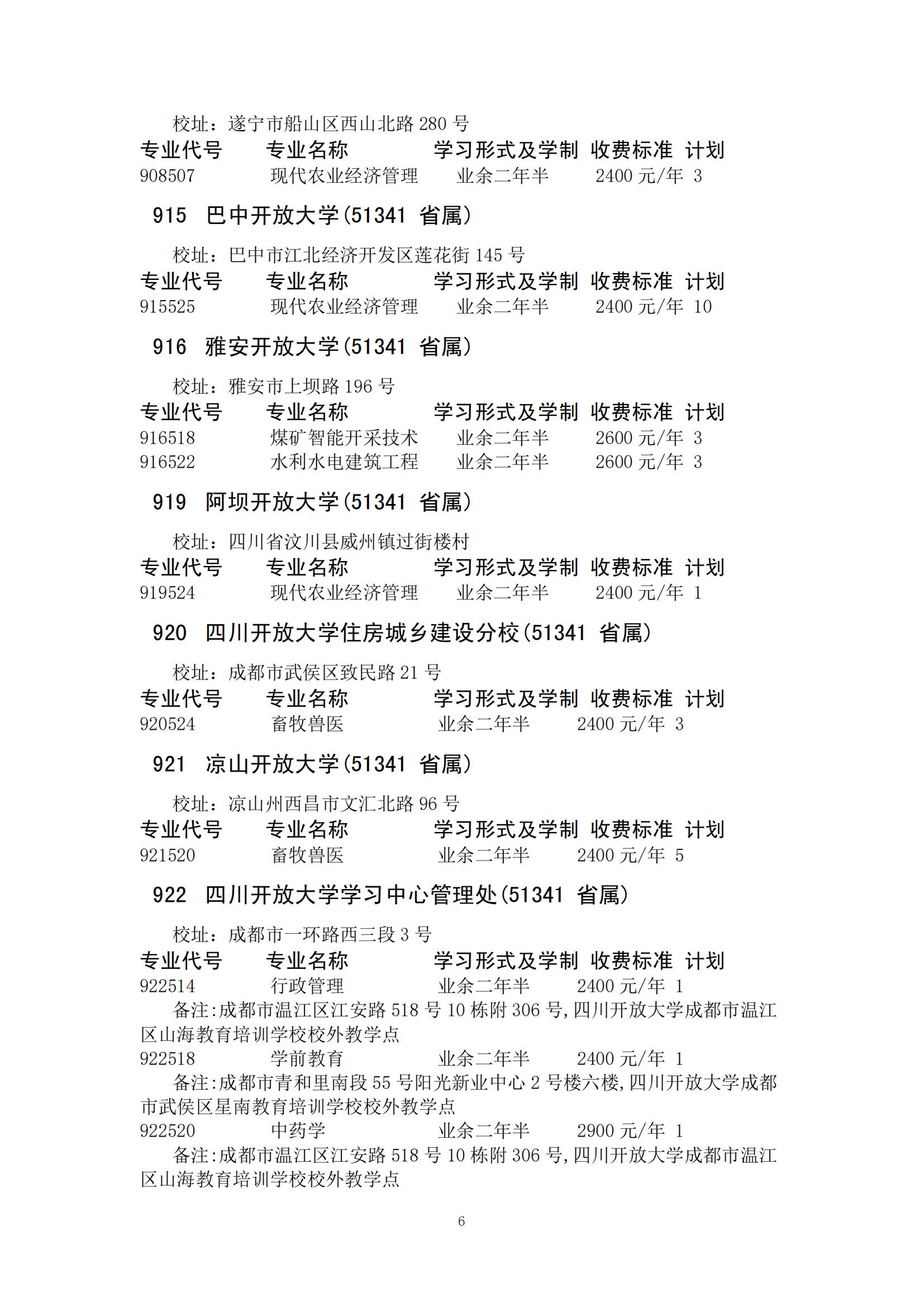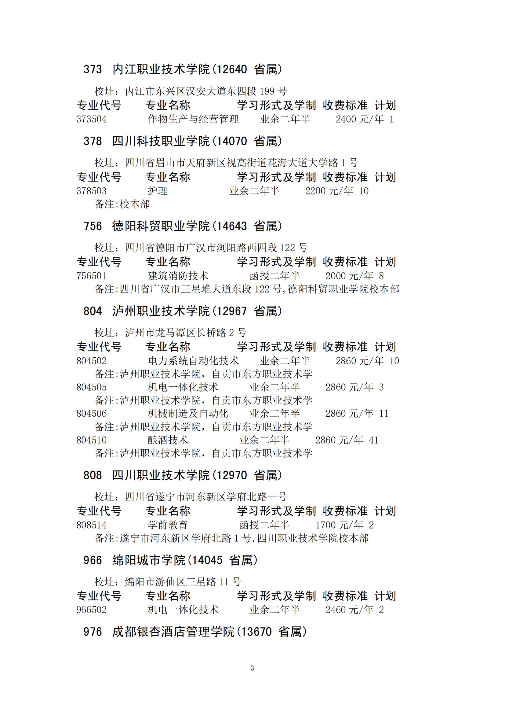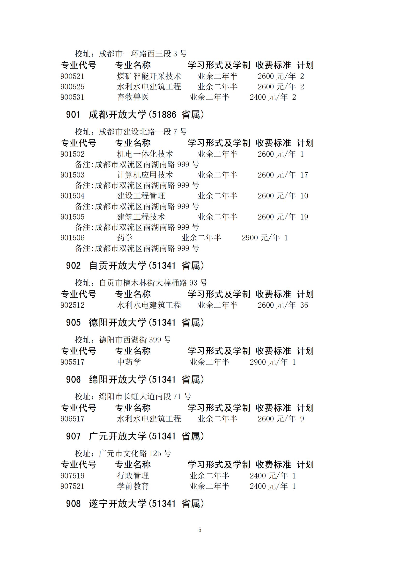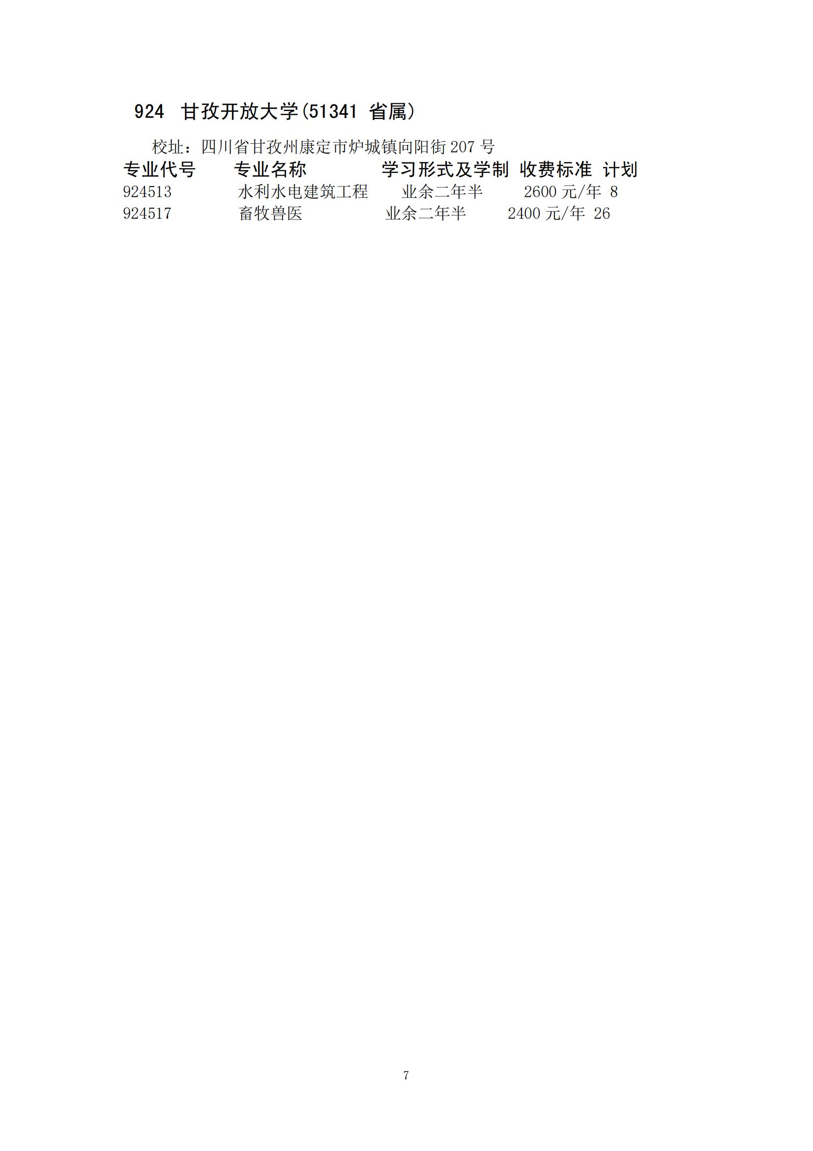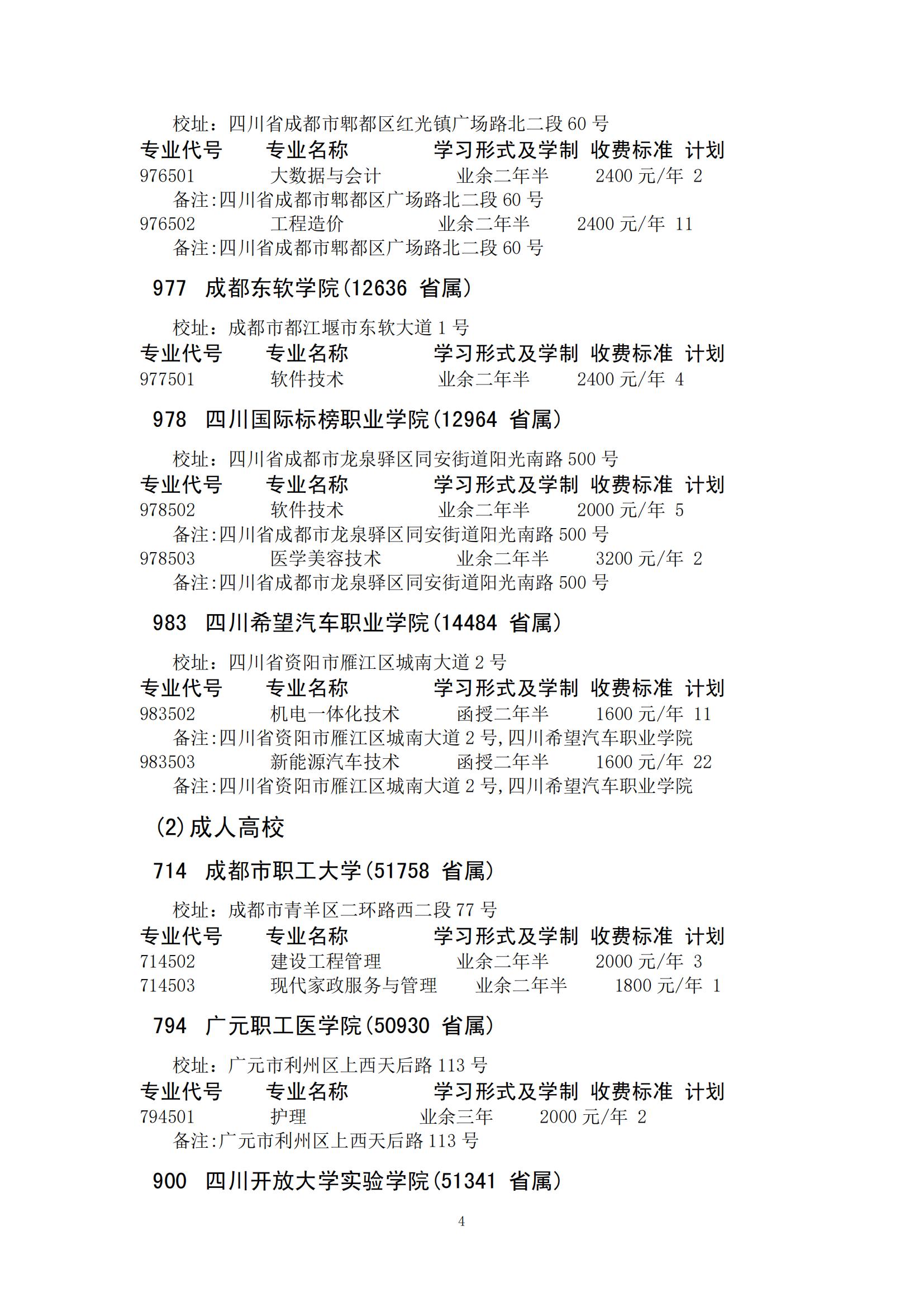 四川省2024年成人高校招生录取征集志愿的院校、专业及名额