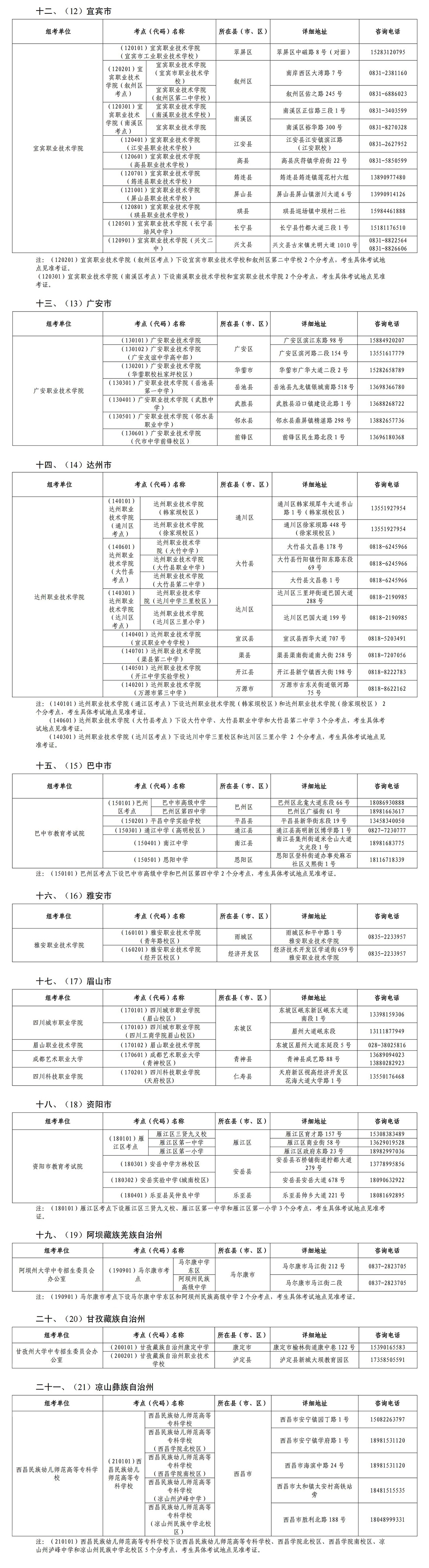 根据《四川省教育厅关于做好2025年高等职业教育单独新利体育在线登陆官网网址有关工作的通知》文件要求,成都纺织高等专科学校等50所省内高等职业学校为我省2025年高等职业教育单独新利体育在线登陆官网网址组考单位,巴中市、资阳市、阿坝州、甘孜州4个市(州)无组考单位,由市(州)新利体育在线登陆官网网址机构代为组考。现将组考单位及考点信息予以公布。