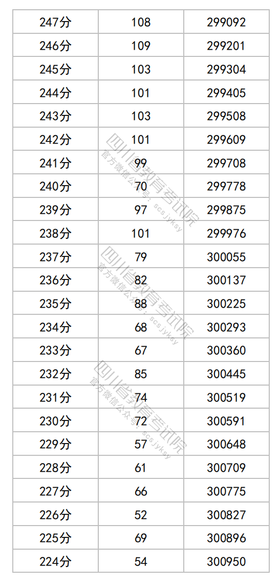 四川省2025年高考综合改革适应性演练成绩分段统计表(物理类)